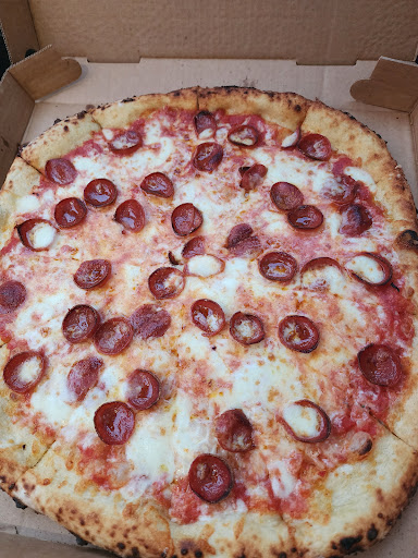When we got our pizza it SMELLED AMAZING! We were super excited especially him. When we got home and opened it was beautiful, chard, nice toppings, not to greasy! Which was my favorite part because I donāt have a gallbladder. Yes, the pizza is kinda expensive, but, when you bite into this, you understand why! Honestly, my boyfriend loves there pizza and only orders from here now unless we are in clinton, or New Haven. Honestly this place deserves a 10/10.