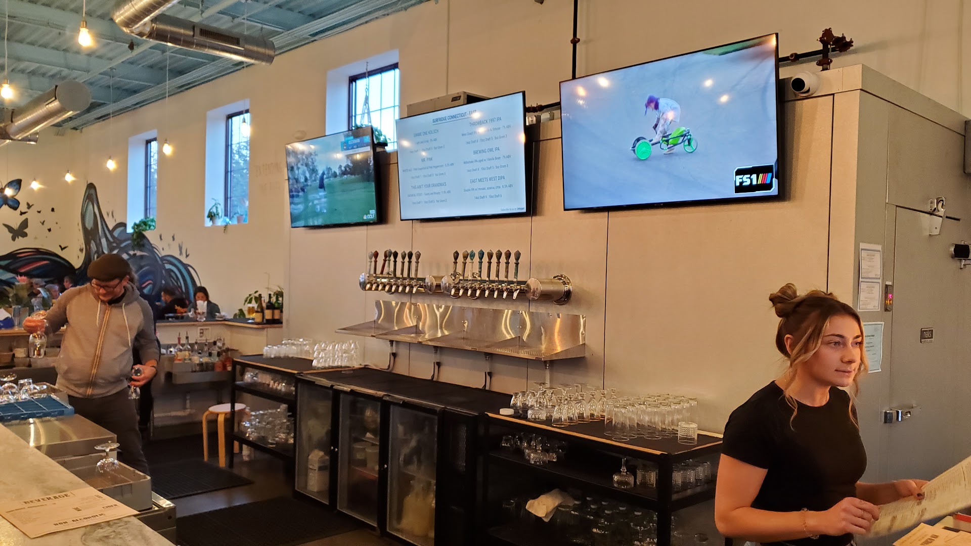 Outside two-top tables were "reserved" and the manager chased down the host who was sitting us at one to tell us we couldn't sit there. Whatever, the host sat us inside at a table with settings (I assume there would be a server assigned if there are place setting with silverware and I saw servers going to tables outside). We waited 10 minutes, no server ever asked to take our drink order or if we wanted food. We could see three of them milling around by the host stand with the indoor seating being mostly ignored. I go to order two beers from the bar since there is no server coming to our table. I stand at the bar to get two beers, where the bartender brusquely tells me that she will help me at the other end of the bar that. There is no sign to indicate this and it appears to be setup as a service station for the servers. How was I supposed to know that I couldn't just order behind someone else to get drinks at a bar? The beer was average. The kolsch was drinkable, but the throwback IPA was bland. A server does finally come by once they notice our drinks are nearly empty after 45 minutes. In the hour we were at Surfridge indoors the outdoor reservation never showed up.