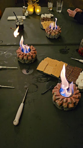 If you're looking for a restaurant that will quench that thirst, fill up those bellies and allow the opportunity to create memories that will bring smiles to not only your face but, those whom you share your experience..... then you MUST STOP IN HERE...... The food is ABSOLUTELY FANTASTIC.... the atmosphere in this place is super fun and exciting. If you love (as I do) old photos and historical facts and information about old towns and surrounding areas, then get ready.... with their decor, it's as if somehow you've taken a trip back in time.... there is fun for the entire family, from the littles to the "top Otree",(family tree).... challenge a loved one to friendly game of shuffleboard. Or, maybe a friendly bet, if ya don't win, you buy mom or uncle dinner...lol If you're into models.... well, they have a GIANT model train, set in a replica of days and a time long gone.... you WILL BE AMAZED at the detail you will find throughout the railway.... I'm just guessing on the size of this marvelous display, but, it's gotta be approx 40'x15', full of twists and turns... full of wildlife from elk, ducks, deer, fish and so many more.... oh yeah, even a bear that happens upon a logger taking a break, sitting on a log..... when you find this particular gentleman, you'll appreciate the humor in such detailed work. Tonight, we met the owner of this wonderful establishment, she is truly a "GEM", such a nice woman.... she walked my 6yr old son around and told him stories behind some photos. Then I find her later talking with my 7yr daughter pointing out hidden surprises in the train display. I too was interested so, I found myself asking questions.... she pointed out, just ONE of the buildings within the model town, took her mother and father over 100 HOURS to create..... such magnificent detail... Anyway...I think you're starting to get idea of what a wonderful experience you can have with your entire family here..... the menu itself is outstanding... I guarantee you will NOT leave hungry...lol Now, in full disclosure, what brought us out here...... is ..... GET READY.... WAIT FOR IT.... The S'MORES.... RIGHT AT YOUR TABLE... FOR ALL TO MAKE AND ENJOY.... That's right.... they bring the campfire experience INDOORS and right to your table..... oh yeah, one more SUPER AWESOME FUN DETAIL... when I say "THEY" bring items to your table..... allow me to be very specific..... it's not a "they".... IT'S THEIR FAMILY ROBOT..... her name is Rosie.... YES, THAT'S RIGHT.....A ROBOT BRINGS YOUR ORDERS..... HOW FUN IS THAT.... Anyway, please stop in and enjoy this magnificent place... take the fam and create a wonderful night (or day) of memories.... you WON'T REGRET IT... The staff, is so SOOOOO nice... they played with kids, they took great care of us all... The bar, they have live music and is full of fun and adventure if you decide.... Lastly, if you wanna have the biggest the wildest and most creative Bloody Mary, THIS IS THE PLACE.... YOU'VE NOT SEEN ONE LIKE THIS.... EVER.... in the pics we ordered.... Kids grilled cheese Chicken Alfredo Ribeye steak Fried chicken Garlic cheese bread..... Only got 1 Pic of the robot... sorry, thought I had more..... Have a great trip.......