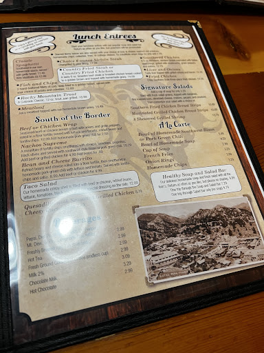 Read moreThis place is very nostalgic (straight out of Estes in the 70s), kid-friendly and the servers really hustle. It is also one of the only Estes Park restaurants open after 8 pm. The atmosphere is definitely closer to side-of-the-interstate-family-steak-place than romantic-date-place. There are booths inside and a patio with plastic picnic tables and umbrellas and a noisy swamp cooler.
