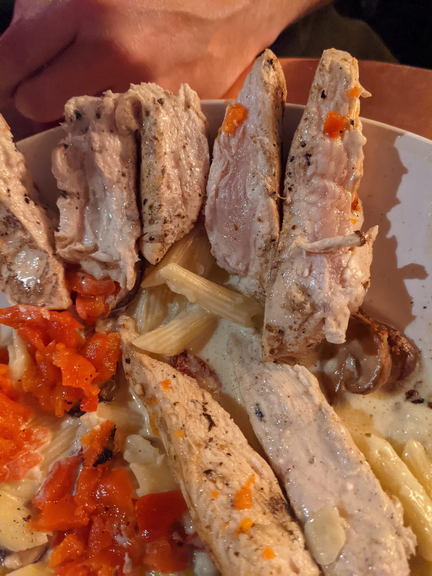 I pushed my plate to the side because I didn't even want to finish it and the waitress came over to take it. I told her I was done and she cleared both of our plates while my wife was still eating. I'm guessing she told the manager because he came over and asked if something was wrong and offered us a free dessert or drink and we declined. It was a nice offer, but we were done at that point and just wanted to leave. They brought out our bill and charged us full price for everything.
