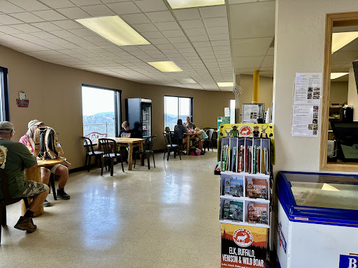 The Cafe has a small gift shop and a few tables with magnificent views out the windows with panoramic mountains and the town of Estes Park down in the valley.