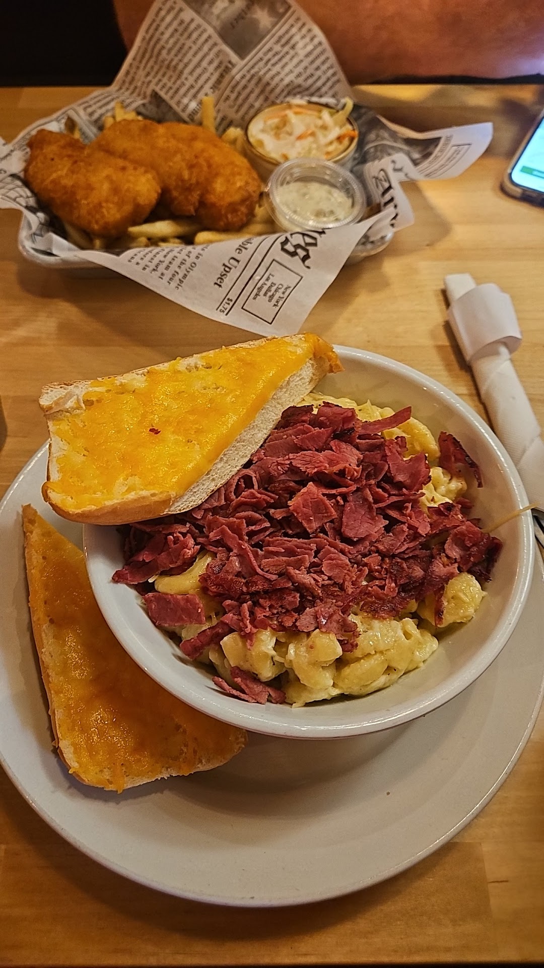 The name and the front of the restaurant lead to the assumption that this restaurant is an Irish pub, but every hint of “Irish pub” leaves as soon as you pass the hostess station and glass shelves of branded merchandise. The remainder of the restaurant is dimly lit with plastic “copper” panels on the walls, uneven tables, and torn booth seats. You can find a little “flair” in their “spread eagle tavern” sign or their “HMS Britannia” sign.