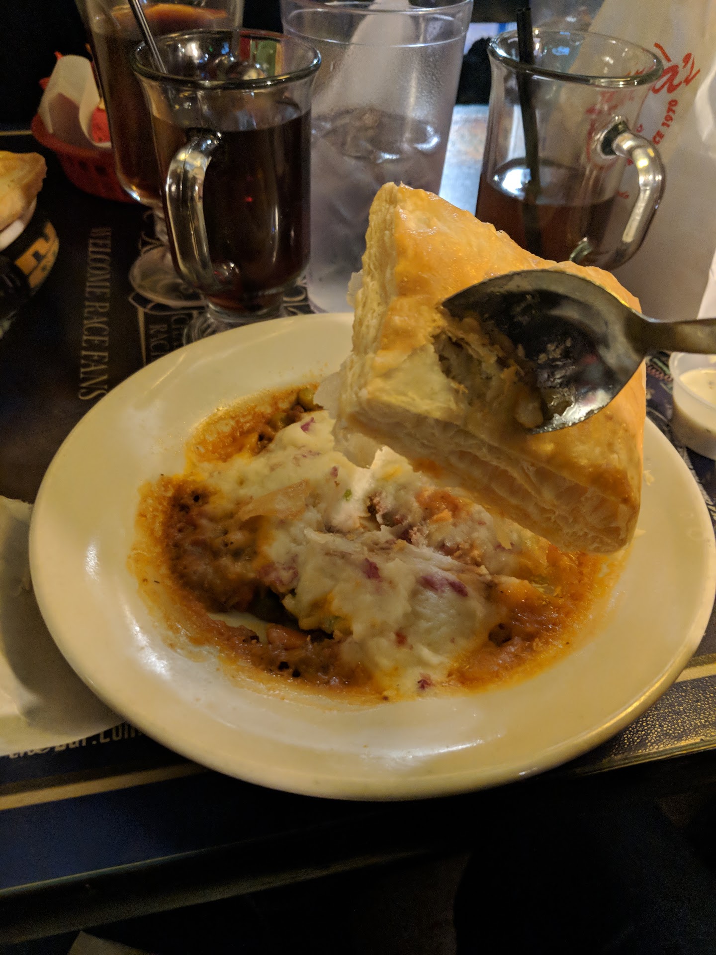 But wait!! There's more! We continued to wait another 20 minutes for the food. Our Shepherds pie came out with a stale piece of pastry, crusty edges (kind of how a 1990's microwave produces) yet somehow still a bit frigid. It was 30 degrees out, but I'd imagine the kitchen has a heater...so no excuse. I took a picture to remember it by just in case my taste buds failed me.