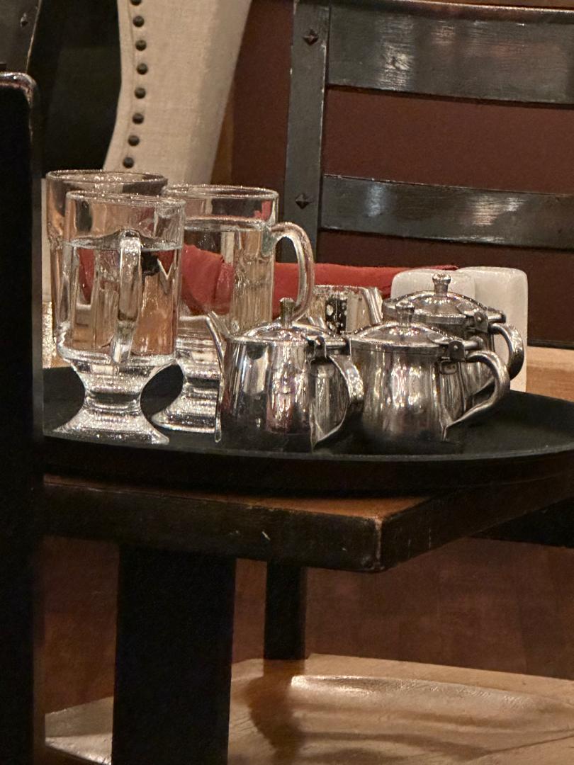 In a strange twist of events, the waiter returned with glasses and individual teapots for each person, filled with VERY hot water. All of the items crowded the small table (see attached photo), along with the dinner dishes, so the hot teapots were touching people’s forearms. It was as if he said, “You want hot water? I’ll give you SO MUCH hot water, you won’t dare to ask for it again!” My family was confused why he would do that, instead of coming over without the teapots and serving the hot water in glasses, as is. They didn’t understand why he was being so passive-aggressive, when my family was nothing but nice to him.