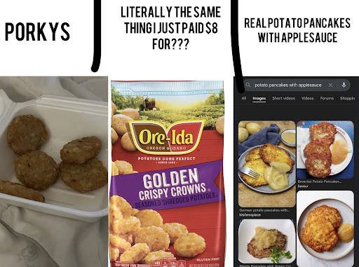 • Potato Pancakes: Not what was expected by any means. What I received was extremely soggy hashbrowns (actually felt like they were microwaved). I know traveling in a styrofoam togo box can cause condensation and they can become soft… but these are almost RAW. They’re frozen breakfast hashbrowns (with maybe some seasoning)… definitely NOT Potato Pancakes.