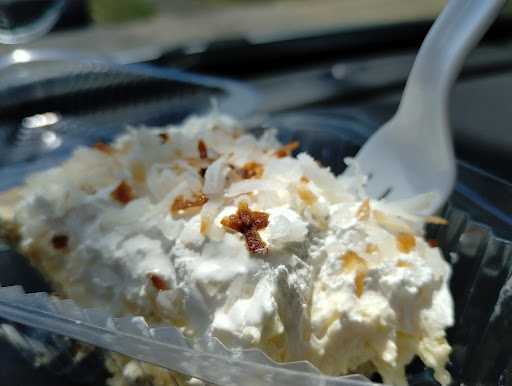 This was the second time swinging by. The first time I had my hungry 15 year old son that wanted to try everything. Ice cream, banana pudding, cakes - we had dessert for dinner that night! The other day I walked in for 'a bite' of something. Boy do they deliver! I grabbed a coconut pie complete with fork & napkin. This picture is the best I could do for restraint - it was taken on my car dash before I devoured it! Living in the south you guys will get it. It was refreshing, full flavor without being so sweet it hurts my teeth. That was a huge complement given in my own special way... Thank you for continuing to provide such great service and...