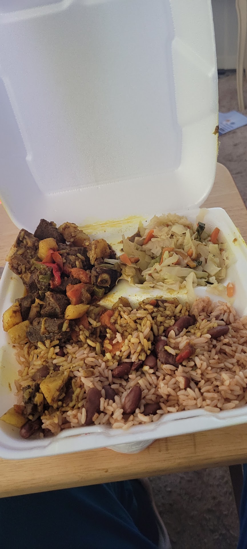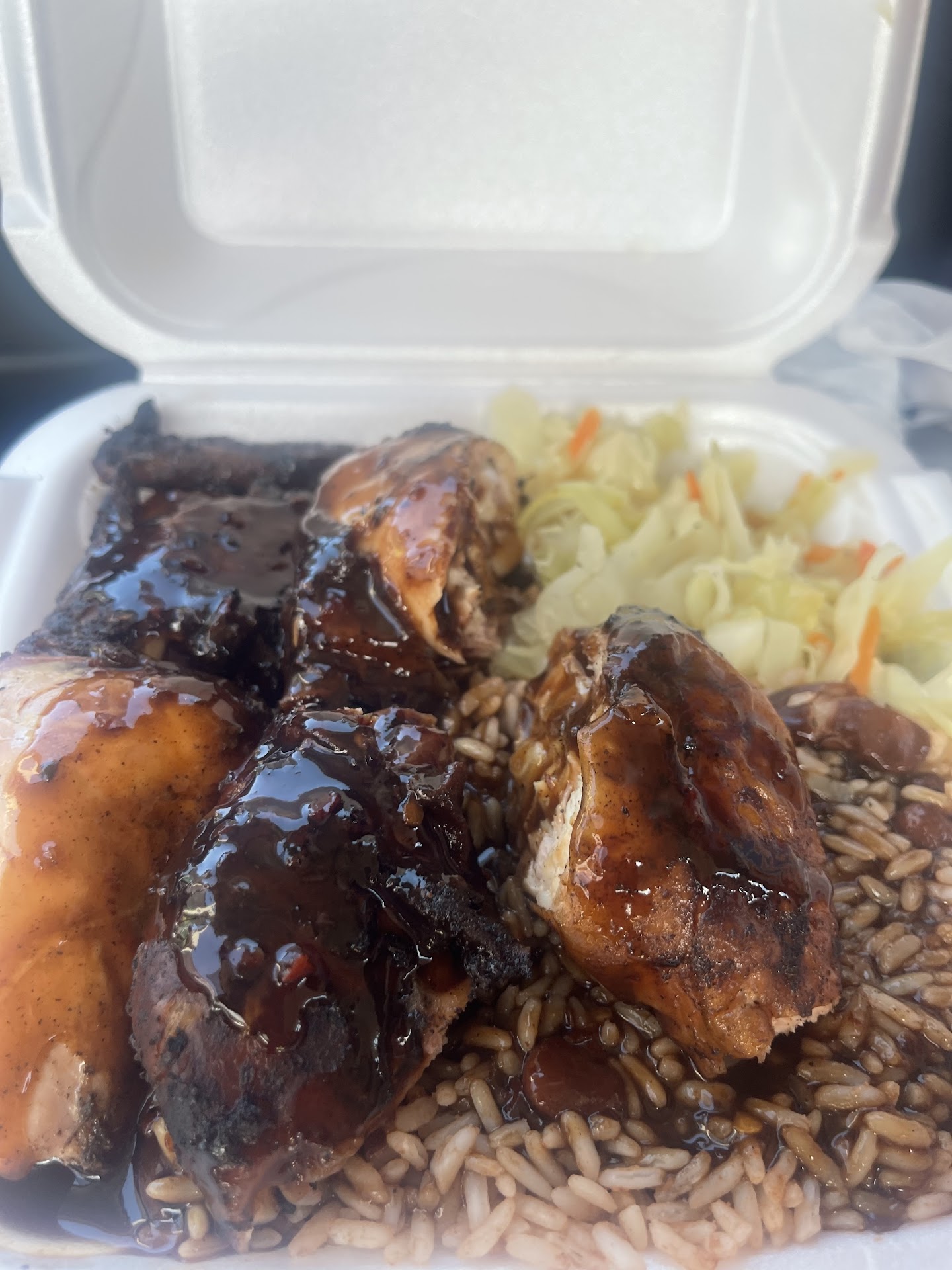 Ā Ā Ā Read moreI live in the area and had been seen this place so I stop in on a Friday a week ago..the girl she was nice.. I ordered half jerk chicken & half curry chicken, cabbage, rice n peas.. they was out of Mac, ..the curry, it looked watery, but she stirred it up, the jerk chicken was grill chicken from the back( where I couldnāt see) then squirt some spicy sauce on it⦠WHATTT..! See I knew better.. not to toot my own horn But I Dooooo Wayyyyy better when I make my on homemade Jamaican Food.. I asked her how is the food, she said good.. she eats here and IRIE JAMAICAN KITCHEN!! Eeeww thatās American Jamaican, to me not real.. I said I go to OCHO RIOS, BRATENAHL KITCHEN.. she said she never heard of them.. I got home and taste some of each.. I couldnāt even eat or finish.. I wasted it and threw away.. and I Donāt play about food I spend my money on.. yeah I will...