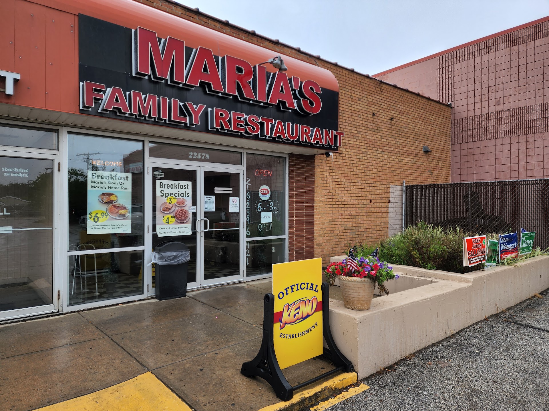 September 2022: I was hungry and wanted something other than fast food. I stumbled upon this place and ordered the Maria's Slam with substitutions (for an extra fee). It came with 2 pieces of raisin bread French toast, 2 eggs, 3 pieces of thin sliced bacon, and 2 pieces of sausage links. I washed it all down with orange juice for a total of $15.