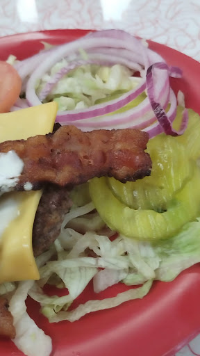 Read moreDon't have different varieties of selections to choose from they also have root beer floats you can get that have different types of burgers they have half-price Burger Mondays and on the walls they have like Frankenstein Shirley Temple Elvis it's just wonderful to step in to somewhere and see different things on the walls and they have a gluten-free option if you don't need any bread they can take the bread off the burgers for you I had a ranch burger and it was really good and they have other types you can also get tea that also have Sprite Coca-Cola root beer Pepsi Dr pepper I believe mountain dew just very much on what you're wanting to get even coffee and they did have different options they also have chicken strip meal for the kids or corn dogs just depends on what you're wanting to get and what you're in the mood for and they also have a drive-thru in case you want to take...