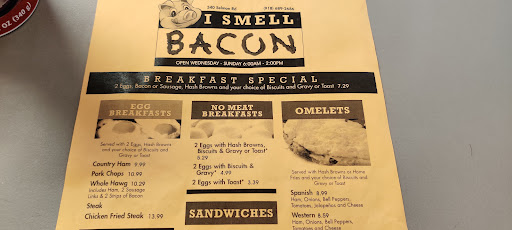 Read moreGood things come to those who wait. There was about a 25 minute wait for is to get a table, and there are outdoor tables at which to sit while you wait. You can wait in the shade, or in the sun. There were five in our group, and it was a bit of a tight squeeze in the corner table where we were seated. There are T-shirts for sale so you can say, "I smelled bacon in Eufala, OK." I ordered the ham omelette with hash browns, and biscuits/gravy. I'm finicky when it comes to my hash browns, and I'm telling you...these were perfect! The waitress kept my coffee full and hot, and took excellent care of us while we were there. It's the last exit going north out of Eufala on US 69, or the first exit going into Eufala on south 69. Stop on by, and smell the bacon for yourself (if you're not in a hurry), and see what it's all about. You'll be...