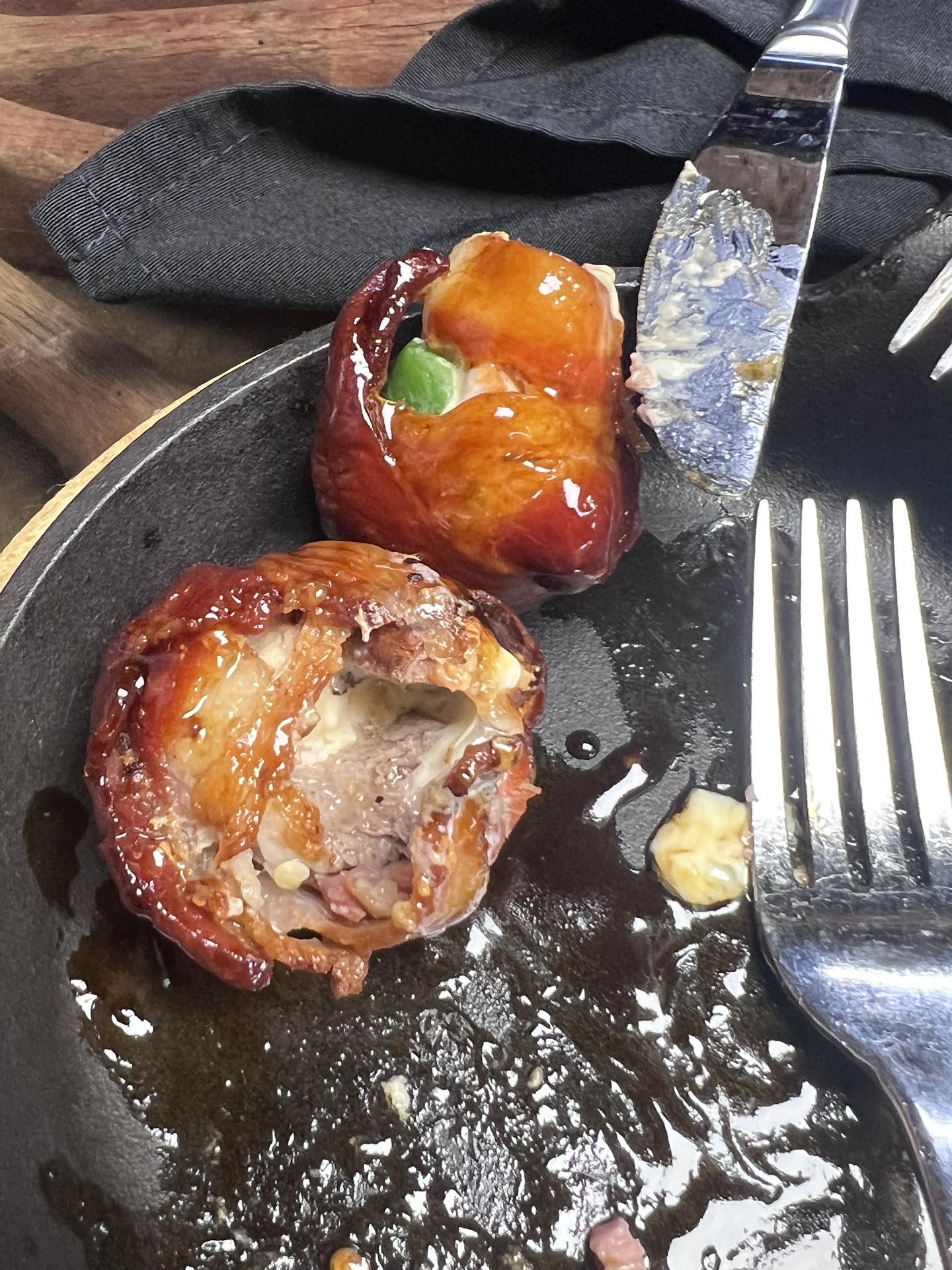 Having a wheat allergy-I cannot eat their bread-which my friends and husband say is great. So I order their smoked sausage- or my favorite “Cowboy Balls” which is to die for. It’s all bits of all their smoked meats and shrimp, cheese and jalapeño made into a ball- wrapped in bacon and cooked and glazed. My mouth is watering just thinking about it. Their homemade BBQ sauce is exquisite with a teriyaki base. Oh, yum!! They have the big variety of side dishes you have seen anywhere. You will find something that tickles the taste buds.