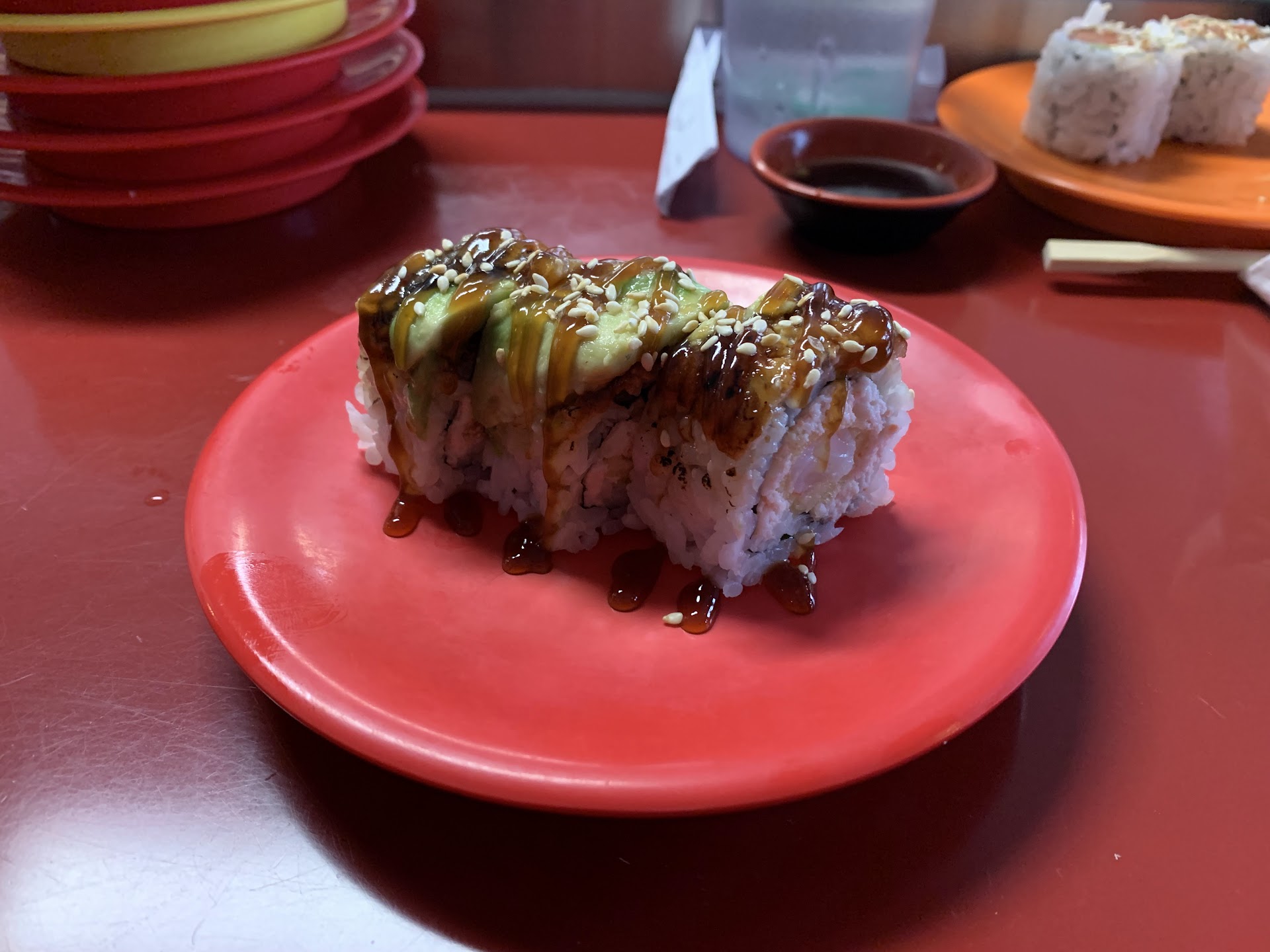 For one the sushi belt experience is a blast. Being able to see all the varieties of flavors cruise by and plucking whatever catches your eye is great fun.