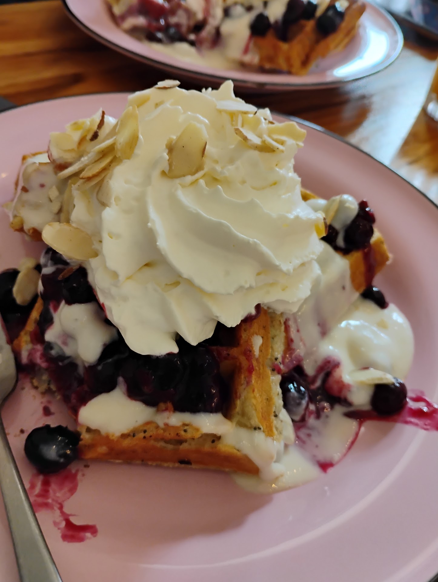 Read moreSo this was a strange trip, my friend and I needed to find a vegan restaurant to meet her dietary needs and we had never tried this place, there were so many things we absolutely loved, like the 'no gratuity' because they pay their staff a living wage and will take extra to pay it forward to those who cannot afford food instead. The atmosphere was comfortable, the staff were friendly, the outdoor seating area was beautiful, the waffles we got were delicious, but it was all tainted by the fact that we came in at the absolute wrong time. We ordered at 11:30 am on a Saturday when the restaurant was busy, and didn't get our food until 12:30 pm. It was absolutely insane, I've never had to wait that long for a meal and there were no "oh, so sorry, we have an emergency in back" or the like so I'm assuming this is their norm for busy times. A mother daughter sat next to us toward the end of our visit when the crowds had left and ordered a shepherd's pie (plus another dish I can't recall) that came out in 10-15 minutes so I'm not sure if they just can't make waffles, if they lost our order for 45 minutes then found it again, or if they just took that long with everyone who came in at their busy time. Anyway, I'd love to try more of their dishes but I'll be super careful to go when they...