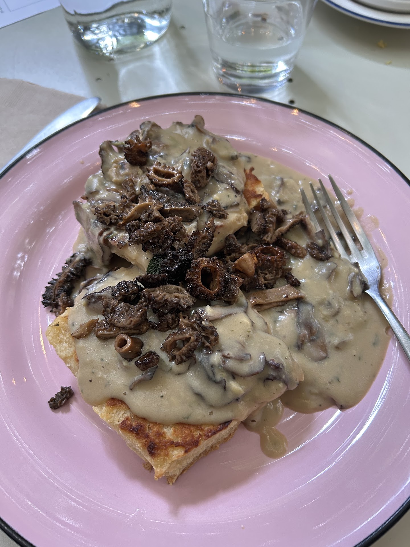ps: you should probably warn your customers when you serve a mushroom that reacts badly with alcohol.even I almost forgot and had a mimosa… Morel mushrooms are one of the kind that can make people sick if they eat them...