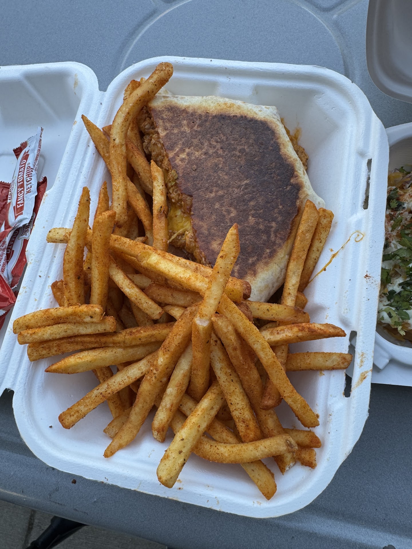 Read moreI’ve been wanting to check this food cart out (they have another location at Oakshire and this location is fairly new). The food options here are creative and absolutely delicious! I love how you get to choose from a variety of proteins and build from there. We split a Fusion Crunchwrap with Chicken Tilkka at a medium spice level and it was fantastic! I can’t wait to go back to try an arepa or...