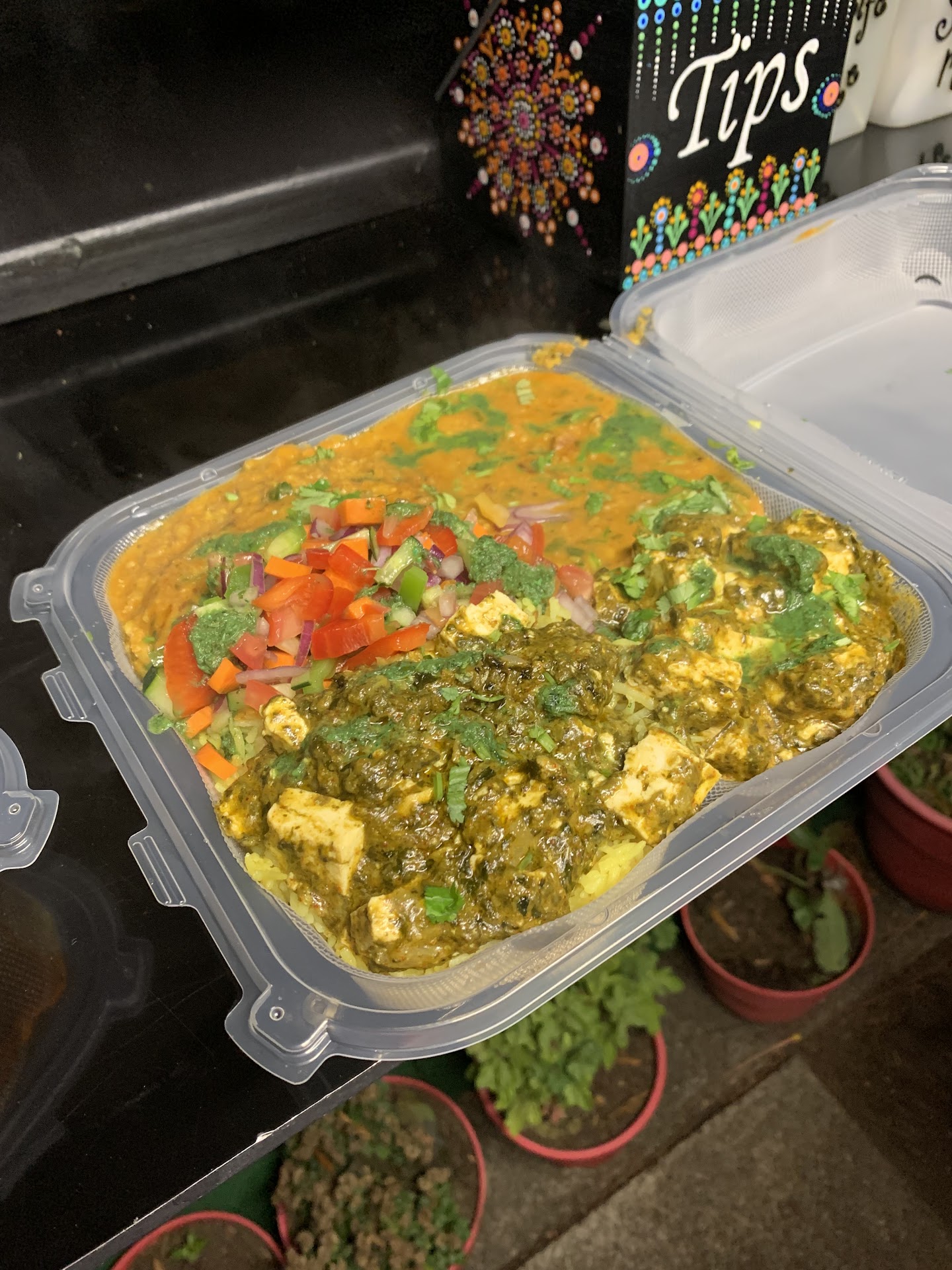 Side salad - the owner included a free little "side salad" that contained a bunch of chopped up veggies. This not only went incredibly well with all of the dishes, but was even a good standalone side. My favorite combo was with the samosas. I added a bit of salt to it for ny personal taste, but genuinely a great little addition. 10/10