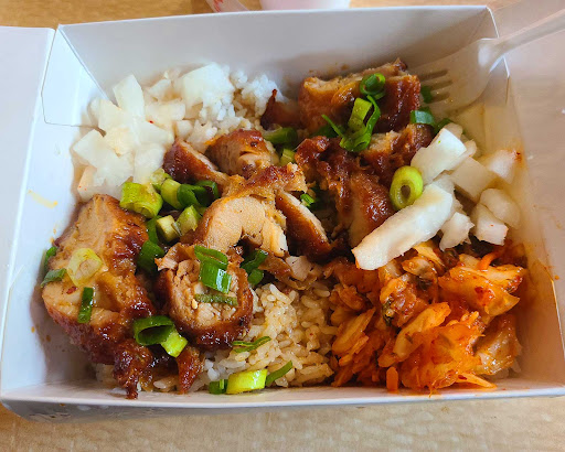 Golden fried bun: got half pork, half beef. Very flavorful and cooked perfectly. Tiny bit of crisp on the outside, and perfectly soft inside. Delicious! This was served with their rice, which is a good portion and is topped with a sauce and pickled daikon. The rice was excellent and had a great chew. The sauce didn't overwhelm the rice and was a nice balance with the very flavorful buns.