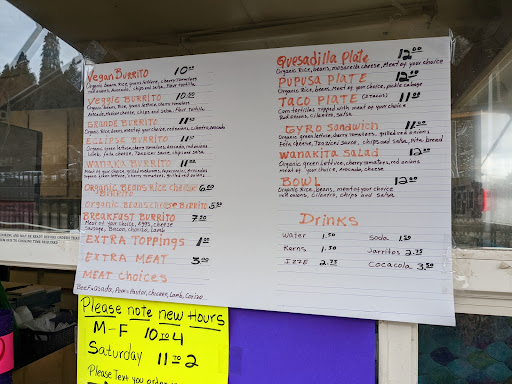 Read moreShe is the best in town. If You're going to Chipotle instead of this place, you're a fool. Been going here the last 7yrs or so. The food is incredible quality made fresh to order, and her green sauce she makes is very refreshing with great balance of spice and flavor. She offers organic rice and beans, and the composition of the burrito is delicious. Prices are more than fair, and your stomach is Happy after you eat the food, you don't get annihilated from the inside out like you would after Taco Bell. Besides all this, the lady is very nice and great conversation. Go see her today and taste what you're missing in this cool little hidden gem near backside of skinner's butte aside hummingbird wholesale. I took my kids here almost 7 yrs ago for the 1st time. She still remembers them. I just love...