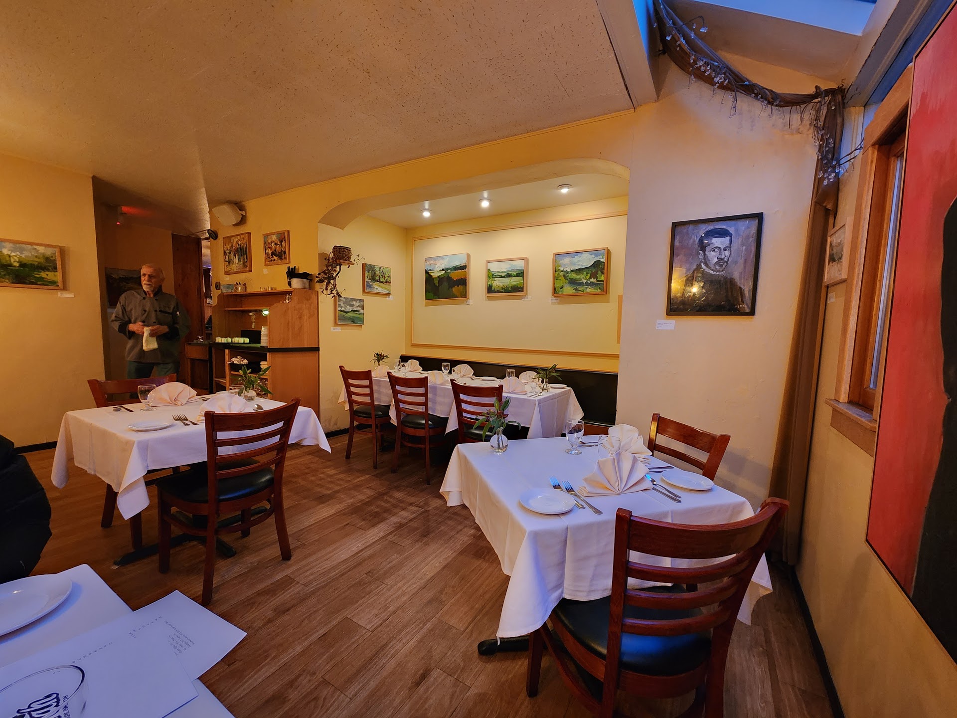 Read moreThe food is average, the atmosphere is nice, but the service needs work. The bread that was brought to the table with menus was not cut through or even close enough to being cut through to be able to tear it apart without mangling it. There were only three seated tables when we walked in yet it took ten minutes to get a bottle of sparkling water to the table for my sister at which point we ordered and I requested coffee. The coffee did not show up before or even with our meal but rather at the end of our meal when I didn't have time to drink it because we had to leave to catch our show. My sister raved about the rice and jalapeno sauce that came with her salmon but said the sauteed vegetables were quite bland in comparison. I had the Hungarian Mushroom Goulash and was rather unimpressed. Our server had raved about it and I was expecting something unique and while it wasn't disgusting, it was seriously lacking. The mushrooms were under cooked, there was nothing "breaded" about the noodles and I can make a tastier sauce in my own kitchen using the same ingredients. To top it off, my card was over charged by almost $15 and was told there is nothing they can do about it until Monday. This was by far not the worst dining experience I have ever had but is is just as far from being the best.