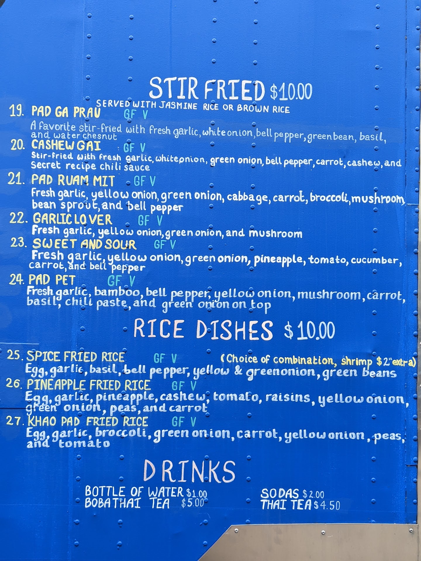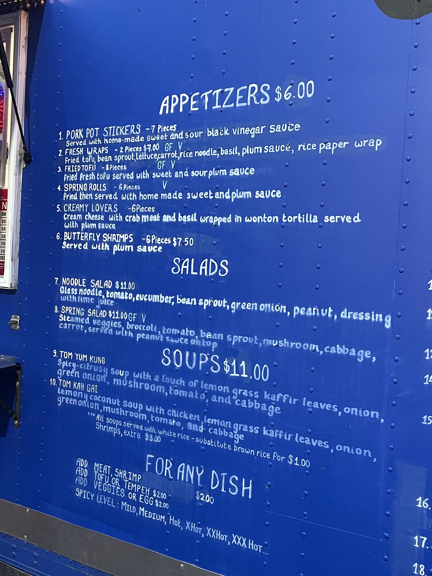 I was just passing by one day, and the sweetest boy brightened my day with his bubbly energy and happy greeting while handing me a to-go menu. As I sat in the car ready to go home, I peeked at the menu where the pad sew ewe caught my eye (great with extra veggies). I got back out of the car to give the kid worker my order, and his customer service was top notch even while wearing a mask. They have three sauce options that he kindly repeated a few times. Ordering the spring rolls was a great idea due to the low cost and amount of yummy food you get.