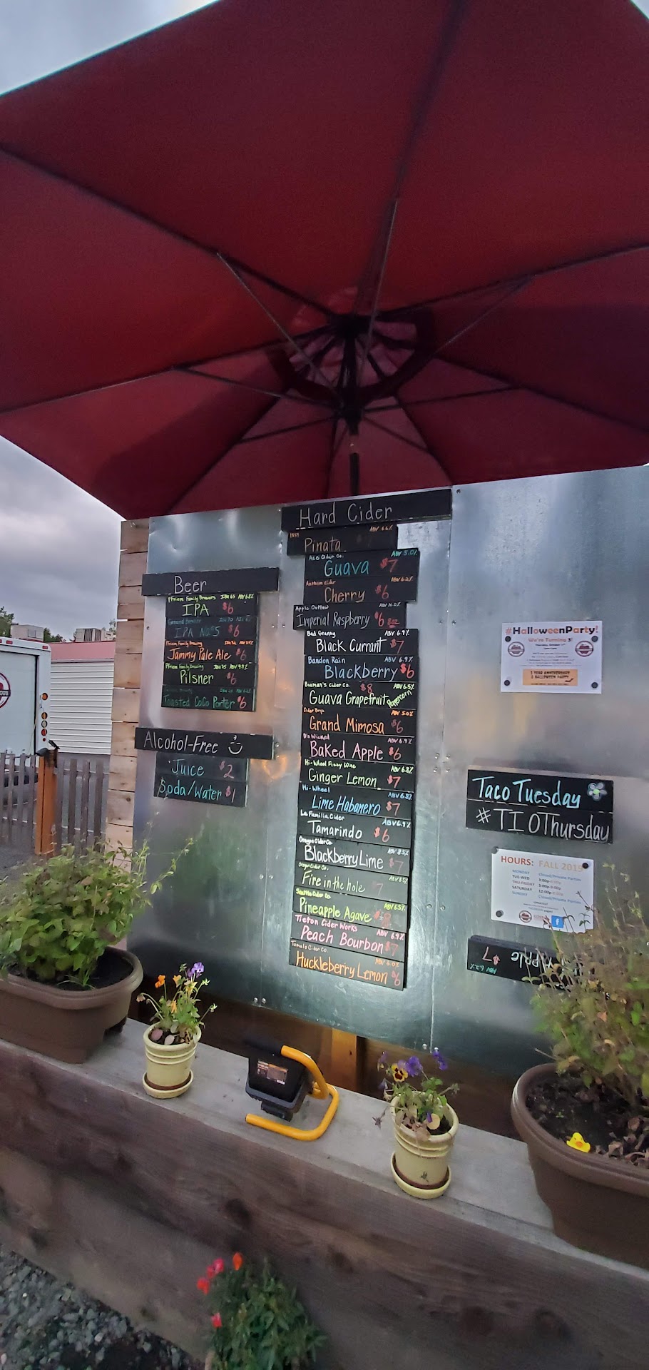 We were told that since Braised & Easley aren't a part of Ciderlicious, no one is allowed to eat from those 2 food trucks, in the seating area, located on the premises; because "Outside Food" is not allowed to be consumed in the seating area.