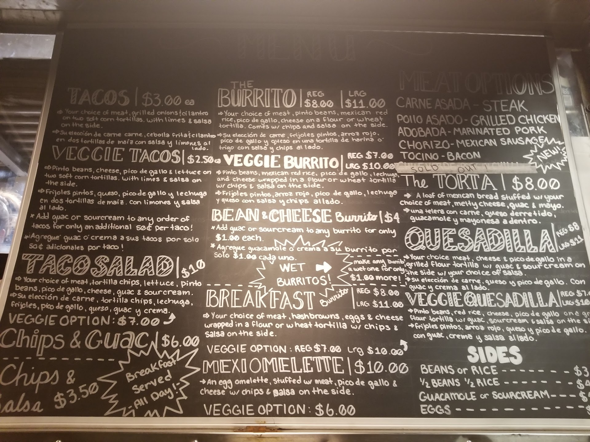 Read moreSince I normally try to eat organic/locally grown this place is my guilty pleasure. It is a favorite of the tech community downtown. Their burritos are the most satisfying in town, and I'm like a burrito connoisseur. I don't know how they do it because there's only a handful of simple ingredients, and I get the veggie burrito. The only reason I don't eat there more is because 9 out of 10 of the times I would eat there would be because I need food for an impromptu reason, meaning I don't have cash on me (they don't take cards). The service is awesome though, whether in...