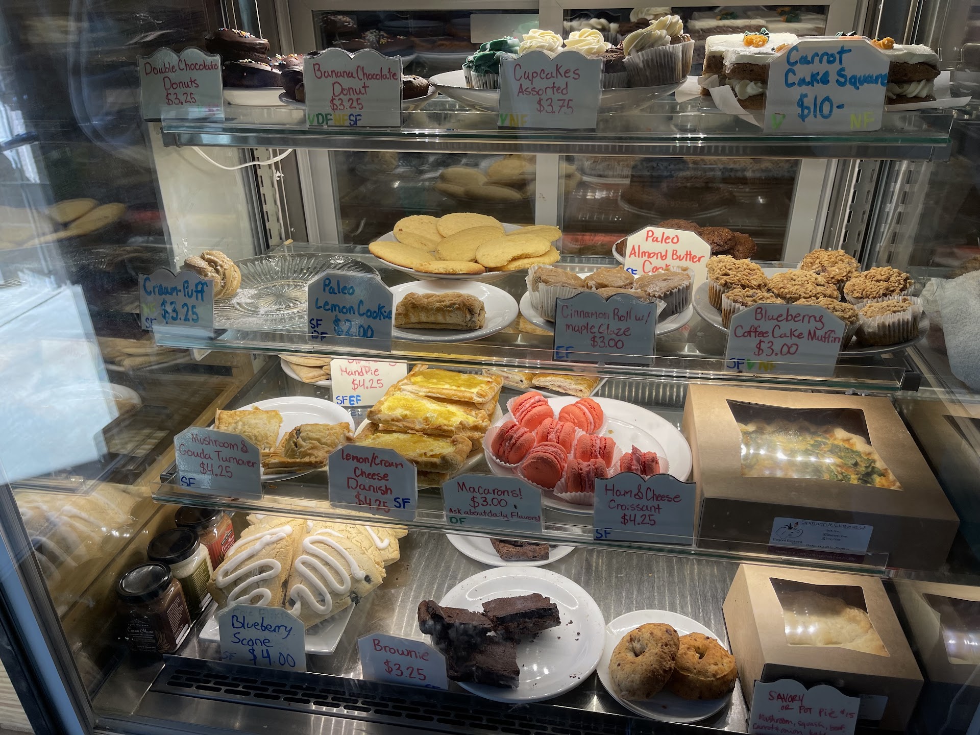 Let me preface this by saying I am a GF tourist constantly on the hunt for a good donut. I love trying new places all over the US and I can say with certainty that this place missed the mark for me. I ordered several pastries (savory and sweet) and a cappuccino for around $40, most of which I’d never purchase again. A few points of concern: there was not a working microwave to warm up the baked goods, this is not a sit-down style establishment, nor was there a public bathroom in case you need one. Probably the worst cappuccino I’ve ever tasted (the staff drinking coffee from a place down the street should have been a sign) but thankfully the lemon cheese danish was scrumptious! I also enjoyed the blueberry scone, it’s a nice soft texture and was perfect when I warmed it up at the hotel. Wouldn’t recommend the chocolate donut, spend the money on anything else. The staff were very courteous and polite with every customer we saw. This place does have GF/vegan options in case someone needed to know.