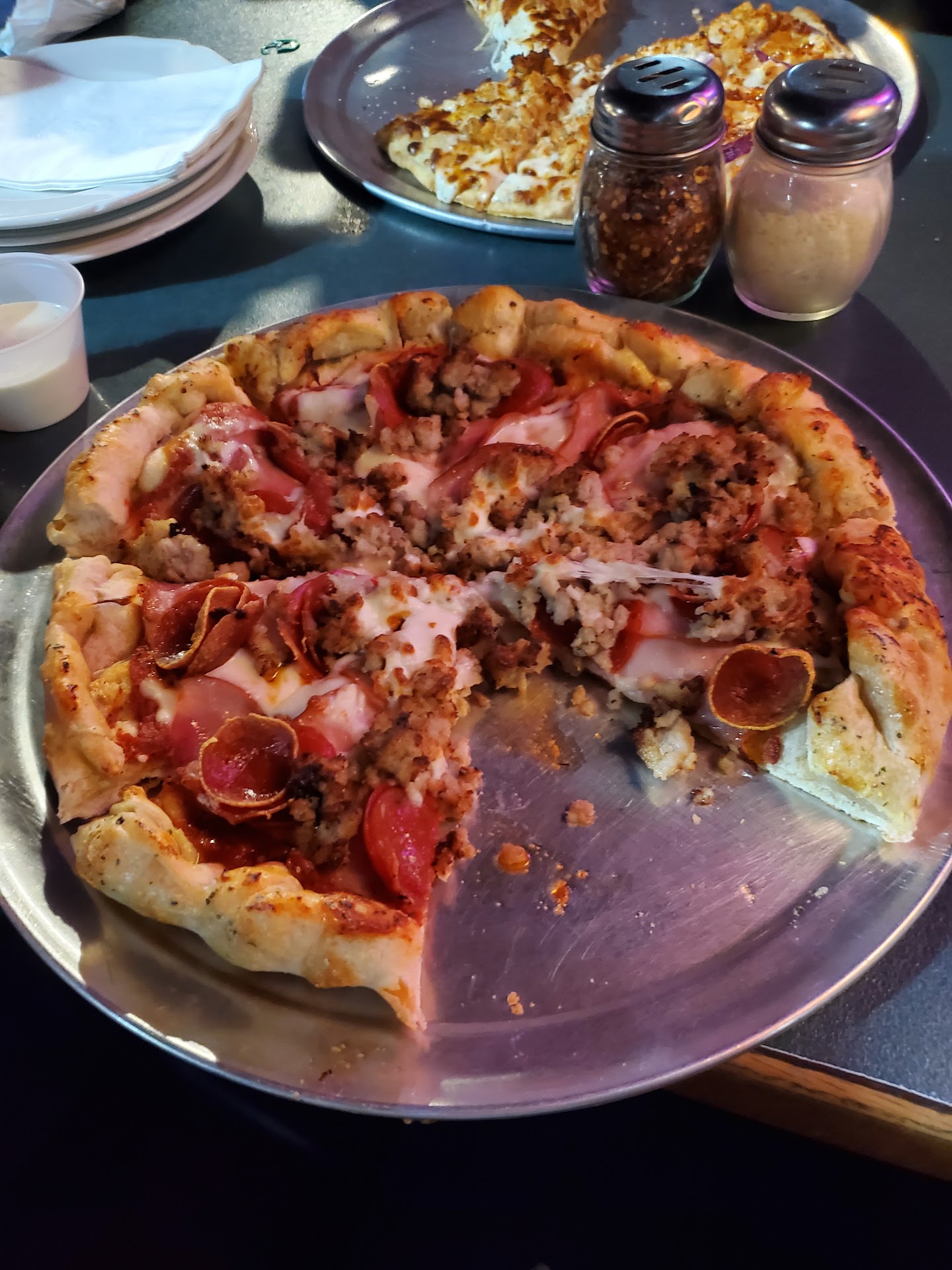 Rough times at Happy Hours. I really like the concept they have with three businesses all synergizing to provide a whole set of experiences. The concept, only. The execution is suffering (I assume since COVID). The pizza oven must have went out for cigarettes and never came back; the tattered signs on the doors hinted me of it's long ago departure. The menu promises fresh baked breads for it's sandwiches; I got a Wal-Mart hoagie that dents when you touch it. Everything is uncomfortably expensive. The sweet and spicy burger looked delicious, though. I should have ordered that. It had a Wal-Mart burger bun too, though (on a fresh baked promise).
