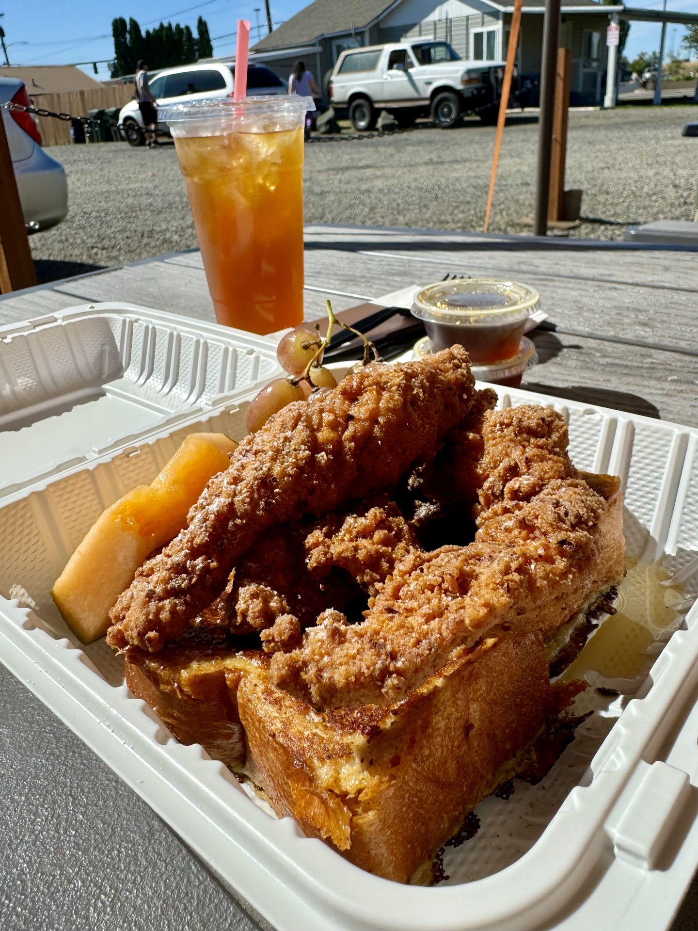 Read moreHey Y’all has crafted a dish that will blow your taste buds away: The Pecan Crusted Chicken French Toast! Imagine a thick slice of fresh challah bread, soaked and richly infused with cinnamon, griddled to golden perfection, forming the base for the ultimate Sunday brunch indulgence. The French toast is fluffy on the inside, with just the right crisp on the outside, soaking up every drop of real maple syrup. What really steals the show is the pecan crusted chicken! It’s juicy, tender, and packed with flavor. Each bite combines the nutty crunch of the pecan breading with the succulent, perfectly seasoned chicken, creating a harmony of tastes that’s simply unforgettable. Everything came out piping hot, and you can really taste the care and thought in every component. 🔥✨