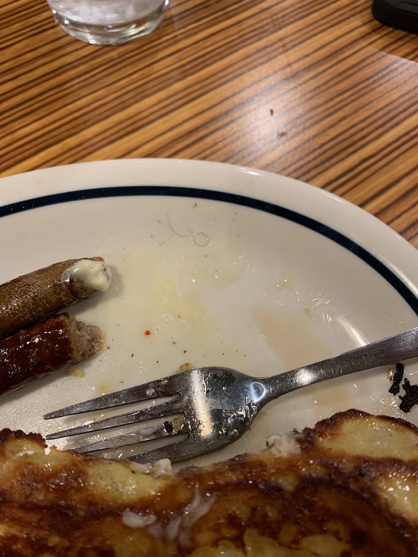 Our server requested for the food to be remade for us (Thank you Brandon!) and the head cook refused to redo the chicken. Just because he didn't want to. He was able to remake the eggs, sausage and french toast, the sausage wasn't hot still, and there was a small black hair on our plate underneath the french toast. We are blonde haired people. It must have come from the kitchen. I just pray it wasn't a pubic hair.