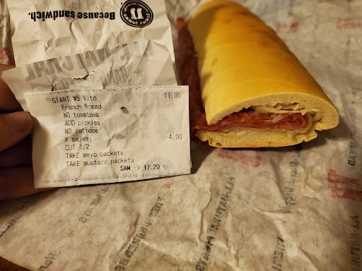 Read moreI went in there at around 1:15pm looking for a quick sandwich and was immediately told that they didnât have any bread, and so they only were giving out wraps. Then the person walked away from me and didnât take my order right away, even though I was the first one there. There was a large order before me, but management should anticipate those large orders and make extra bread. I then was asked what I wanted, in which I told them a Caesar wrap, they rang it up without saying a word and walked away without asking for anything else or any sort of customer service that would be expected. This solidifies, my lack of confidence with Jimmy Johnâs. The place also seemed pretty messy in the back. The wrap was overpriced for the size, one...