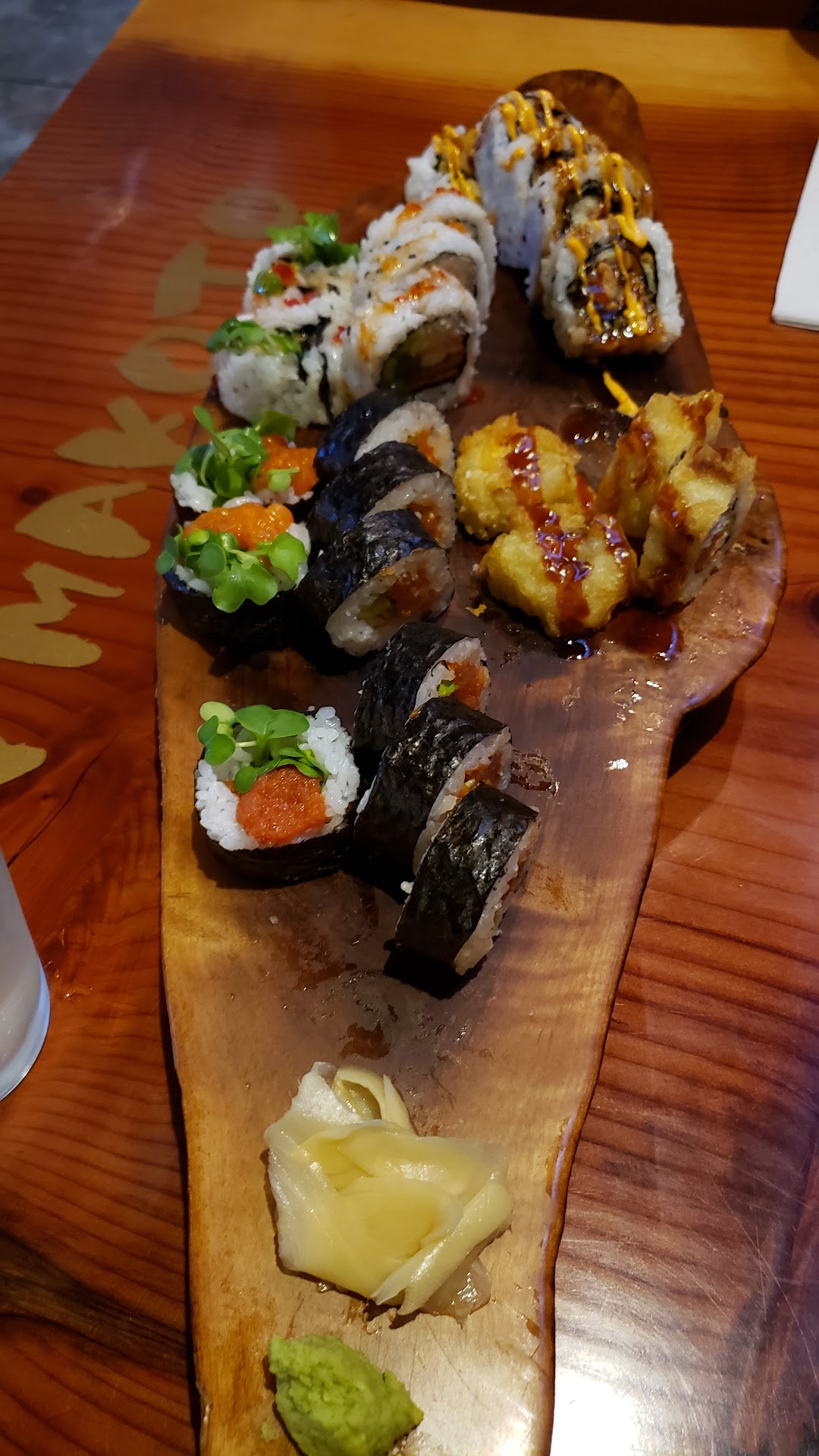 We really enjoyed almost everything we ordered: agedashi tofu, crispy rice with salmon (even a seafood hater loved this so much they had seconds), chicken karaage, lion king roll, shiro roll, spicy chicken fried rice (another favorite of our group), veggie yakisoba (tasty sauce, fresh veggies, and al dente noodles), beef rib-eye teriyaki.