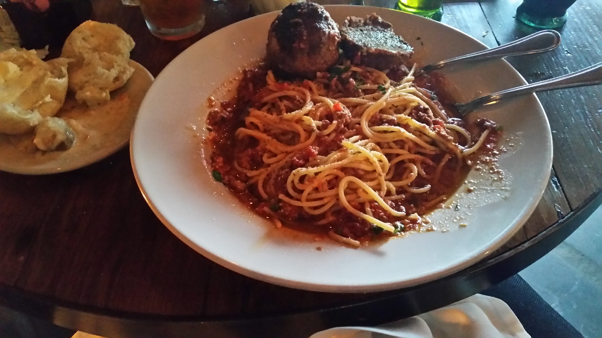 I had a TERRIBLE experience at this restaurant. I went here for my 18th birthday dinner with my family. There were about 12 or 13 of us, so not a really big group or anything. First, they assigned us a waiter that had been on his SECOND week of serving. They pushed like 3 or 4 tables together for us, and put them up against a wall so hat we could barely get in. There was no room to even sit down, let alone put any purses/bags/presents. We were crammed in there. The waiter was very nice and you could tell he was doing his best, and I don't even think he was the problem. Our drinks came pretty quickly, and it started off well. The bread that they served was completely cold, but he was good about continuing to bring bread and drinks out. I ordered an appetizer of bruchetta and a duo pasta dish that had half fettuccine alfredo and half ravioli with tomato sauce. I even asked the waiter if it was vegetarian to be sure (because I am strictly vegetarian), and he said it was. After ordering, we waited FOREVER for our food. Some peoples entrees of soup and salad came out first, then someones entree of pizza came out, then my cousin's appetizer of calamari came out. I mean there was no order to the food that was coming out at all. It was totally random, and none of it was very good. I was last to get my entree (about 15 minutes after everyone else had got there food), and when I asked about my appetizer that I had been waiting about an hour for, he dais that the kitchen was understaffed and that it will be out soon (even though I had made a reservation, so they should have known to book chefs for the kitchen, and I don't think that was the problem. It seems as though they were just lazy and throwing things together and then letting things sit on hot plates on the counter forever before bringing it out). When I finally got my entree, it was cold, and when they brought the bruchetta out, it was a huge plate with a small portion of chopped tomatoes and a few pieces of toasted bread. Nothing really had any seasoning, and everybody complained that their food was cold and bland. Nobody at my table said that their food was really good. But we ate anyway, just happy that our food was finally out. After eating some of my food, I realized that they put the meat sauce on my ravioli rather than the tomato sauce. There were little chunks of ground beef, so I didn't notice it at first. I ended up getting sick from it and had to miss a concert after dinner because I didn't feel good enough to go. Not only did they make my birthday dinner horrible, they ruined the rest of my night on my big day. I was so upset at that point. This was my 18th birthday dinner and there were more mistakes made than good things. I told my waiter and he apologized and said that he would take it off my bill. That was the line for me. I also wanted left overs, but obviously that was out the window at that point. The restaurant wasn't even busy! I asked for boxes three times before someone finally came 15 minutes later to box up our food. The waiter said he would give us all free dessert, so we all ordered dessert. I ordered teramisu to go, and my cousin ordered cheesecake to go. It took another 20 or more minutes for dessert to come out, and I was so ready to go. Again, the hot desserts were cold and not very good. As my cousin was getting ready to leave, they still had not brought out of boxed dessert. I asked for it three times, and every time the waiter left, he never came back with it. He ended up having to comp quite a few things off of our bills, and then he made mistakes on the bills and took forever to run the cards. It took forever to get our desserts finished and our checks paid. I can easily say that this was the WORST restaurant experience I have ever had, just sucks it had to be on my birthday. I wanted to write this review (which I never do) just to warn people not to go here. I will never be...