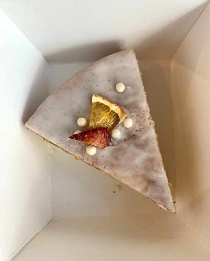 The pastries they had on a random Thursday afternoon when I walked in: the blackberry nectarine pistachio frangipane. The strawberry lavender Tres Leche cake. The mixed berry tart with fresh cherries, blueberries, raspberries, blackberries, and two kinds of stone fruit. The coconut custard passionfruit curd which is gluten-free presented so elegantly. The yummy carrot cake sandwich. The coconut cream tart. Then you wander over and you see the olive oil white wine cake. For just $4.95. The lavender lemon tea cake. A cherry custard tart, the palmier. The hazelnut cloud cookies the pecan cloud cookie. The chocolate chunk shortbread cookie. The flourless chocolate cake.