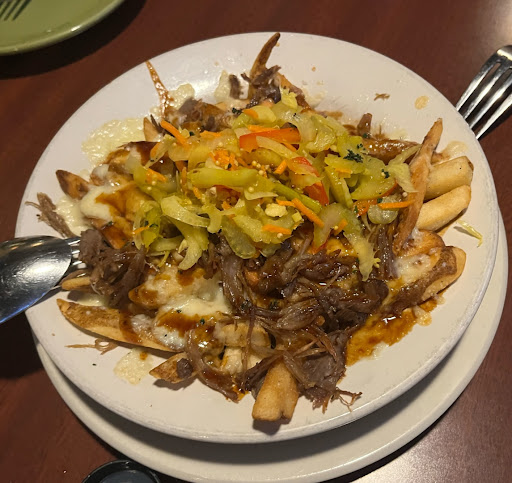 The poutine was delicious. The drinks were clearly crafted on demand. The mains were beautifully plated. The salmon entree—the veggies were delicious, and the salmon was well seasoned. It was also overcooked and not nearly as tasty as the appearance would suggest.