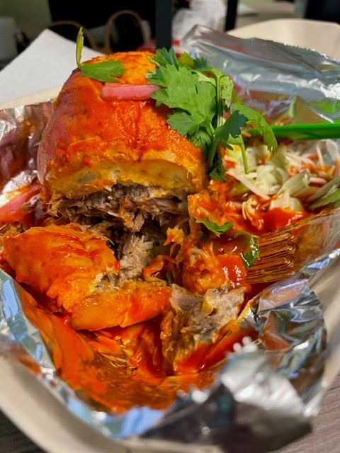 Read moreI had been watching this space ever since the signage went up and the menu appeared in the window. I live nearby. Finally, The Day, arrived. Sort of. I went the second day of their soft opening. They had sold out of a couple of items, but there it was, Torta Ahogado. Ever since seeing Marcela Valladolid on one of those best sandwich shows I have been desirous of this sandwich. And here it is, in Eugene. I enjoyed the sandwich. Carnitas on a bollilo roll slathered in a guajillo sauce. Very wet, very messy, and wholly delicious. I had the pleasure of dealing with two professional young women working here. I am guessing they are going for upscale casual. Whatever. If the other sandwiches are as good as this one was this place could be the Cantina in Mos Eisley for all I care. ...