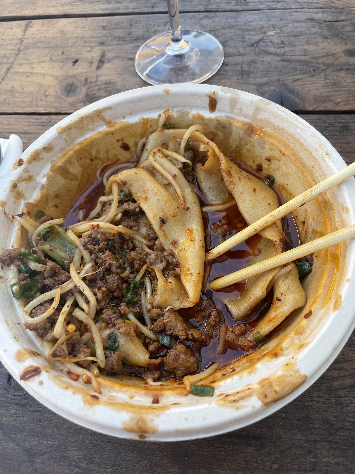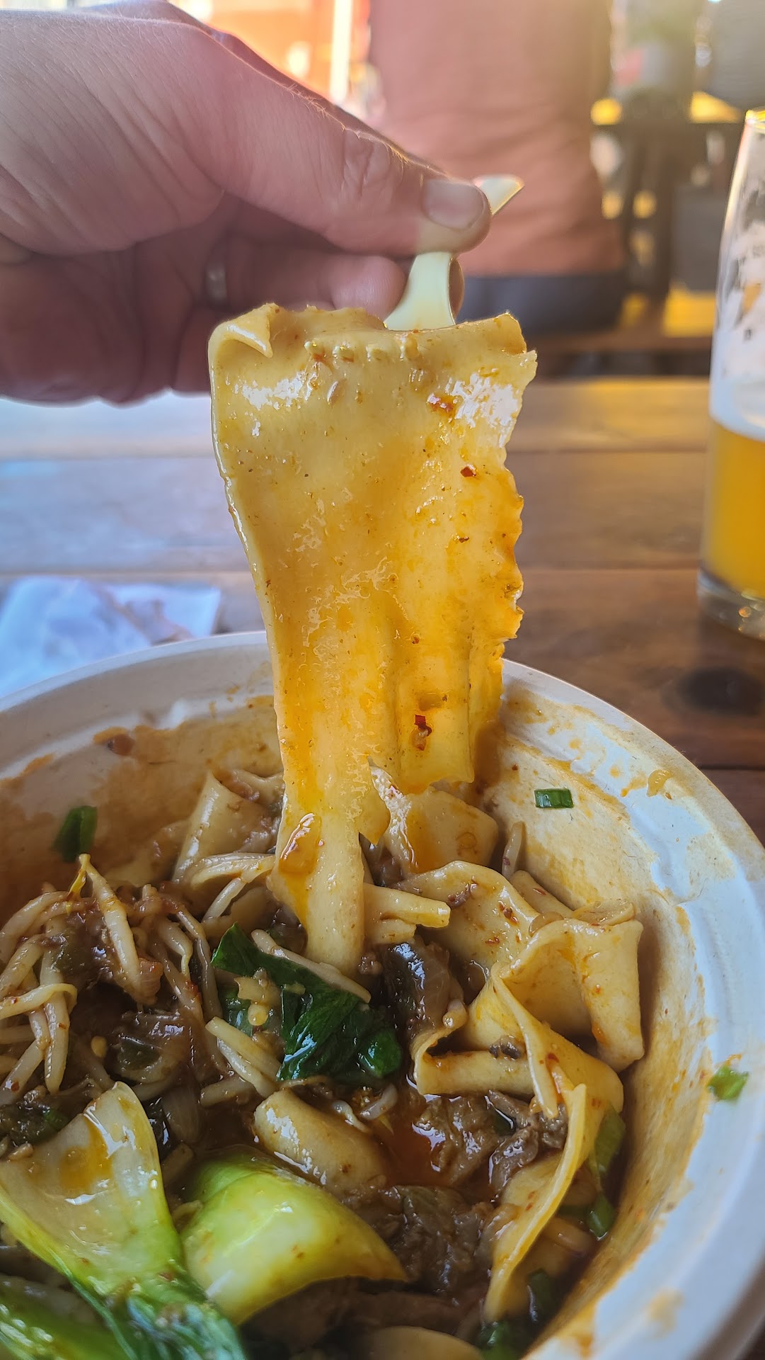 Wow! Stopped into Coldfire Brewing and before I started drinking (too early), I was already eying Stretched. Ended up caving after a couple beers and it hit extra hard. The folks working the truck were quick, very friendly, and super helpful. We struck up a nice conversation afterwards too. I got the pork zhajiang chili oil biang biang. The noodles were sinfully chewy, wide, and not too thick. The flavor was complex, spicy, and absolutely out of this world! Heat was not overwhelming, but just right — at least for my palette. They can also hold on the meat for the vegetarians/vegans in the house. I’ve had some decent food from Xi’an, but I won’t claim to be an expert. That said, I think anyone with taste buds will love this. I would recommend...
