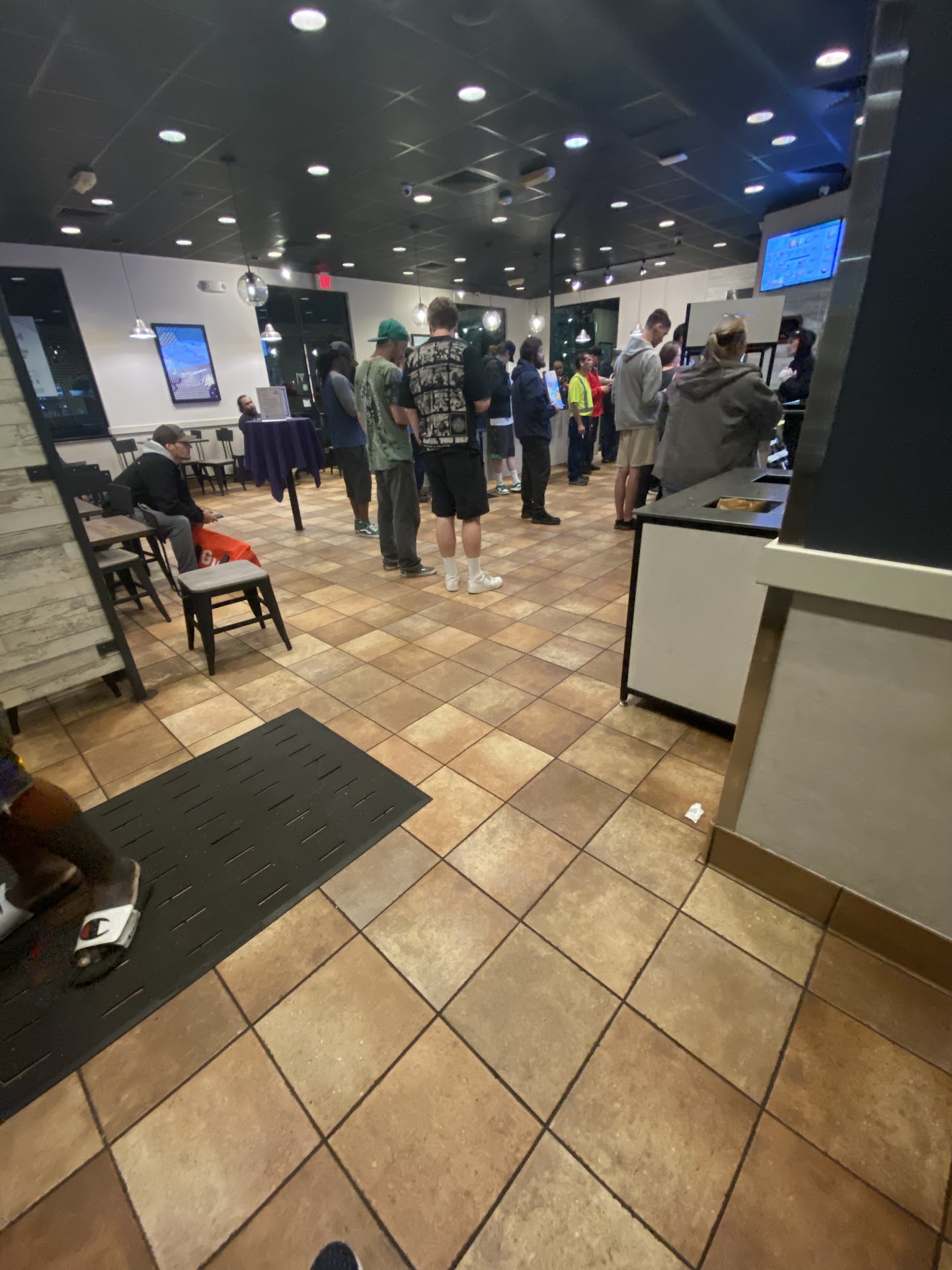 I am a delivery driver. Tonight, I had to wait for over 2 hours for them to make the customerâs order. I understand they are busy and there were literally 20 of us drivers locked in the lobby (after midnight). It was hectic and we all had customers who were (reasonably) confused at a âfast foodâ restaurant taking 2 hours. One driver said he was going on 3 hours and their customers was livid at having to wait 3 hours for Taco Bell. Upon one driver politely and calmly asking for an ETA, the employee angrily yelled âNO MORE ETAâs!!! YOUâLL GET YOUR FOOD WHEN ITâS READY!â