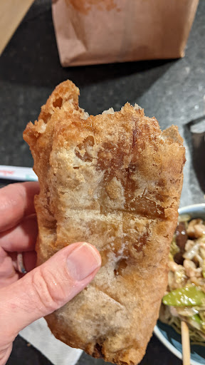 The sweet and sour pork was really good! Crispy, with a nice basic sauce. My husband had the pineapple chicken. It was basically sweet and sour chicken with some pineapple in it. It was also good, but he loves pineapple chicken and often the sauce is a yellowish pineapple sauce, so he was disappointed. So breaded deep fried meat with sweet-and-sour sauce, theyâre doing a great job.