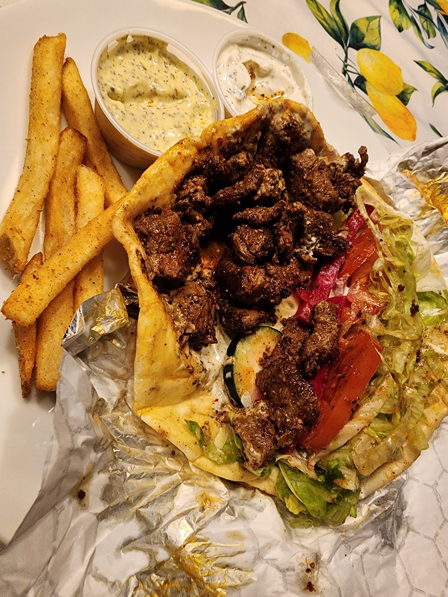 Read moreOver priced for what everthing was food was sub par for Mediterranean im gyro was bitter cause the greens where not washed. The meat was whatever not authentic flavors in any way small portion for the price. Would rather eat tradewinds for the price same price. All and all will never go back and telling everyone to stay away from this place. They are taxing cause they are in south eugene where as if u go to downtown or west side the meal would have been...