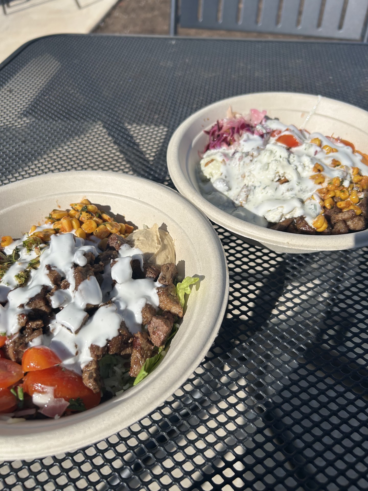 The many times I've visited, I always pick up my order. Next time, I will pick up my order and check my order before leaving. I've never had a bowl that was half-full, nor have I had a bowl that came with burnt lamb meatballs and falafels. I was livid, both pieces of meatballs were burnt and were not edible. Sometimes, when meatballs are burnt you can cut that part off. Not these, both sides were burnt and could not be salvaged and were thrown away.