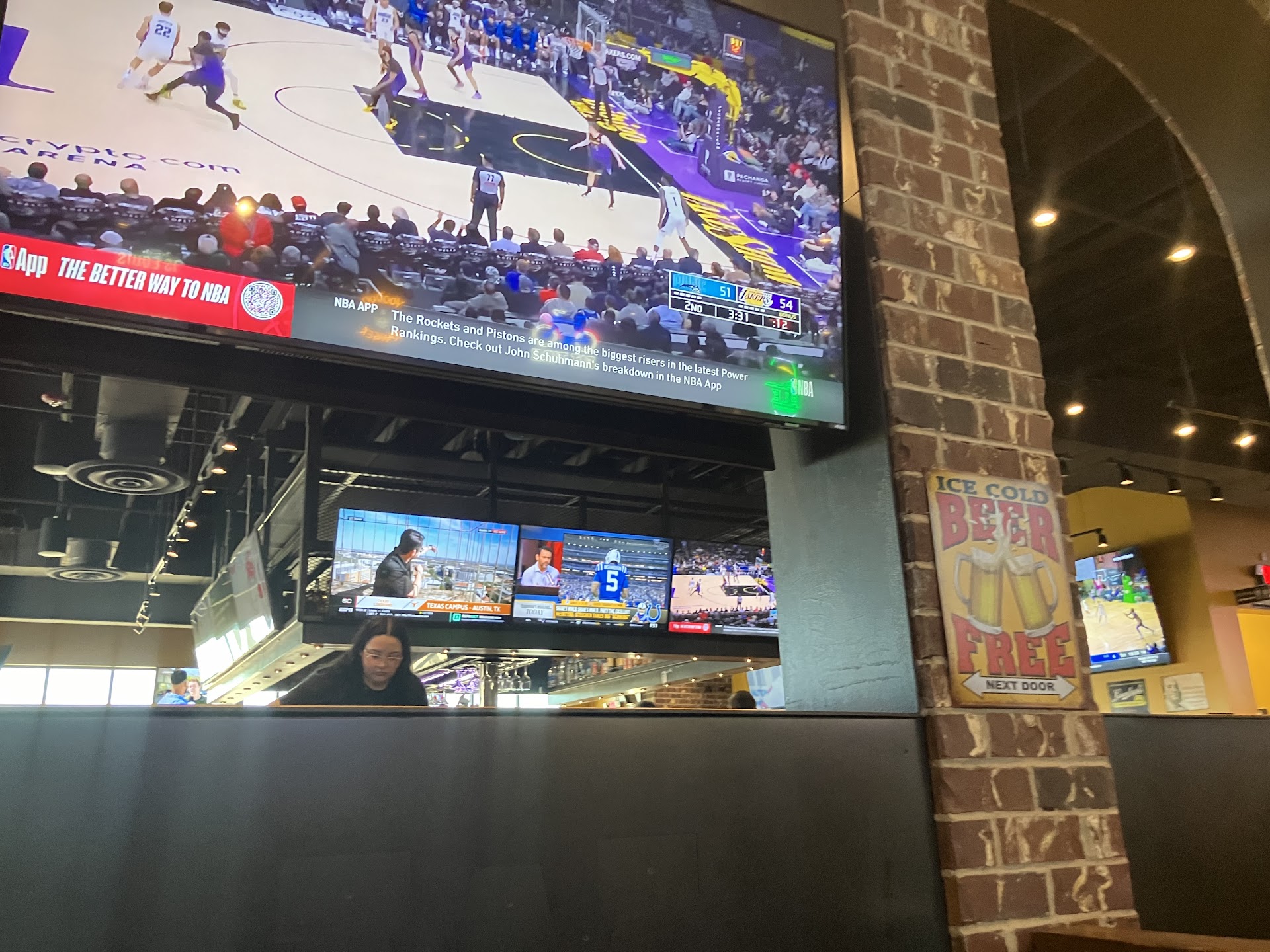 Sat at the bar and it took the 3 bartenders to walk past me for about 6 minutes for them to ask me if I wanted to order something . I was trying out the place for the first time so I didn’t want that to ruin the experience for me but I should have just left then and there while I had the chance . Had a drink called the home run margarita, it tasted like a Mai tai with tequila it was 90% juice , at least it didn’t taste like juice concentrate so I’ll give them that but still not great . I order an appetizer the mozzarella cheese sticks and the hangover burger , made it a double and I “upgraded” to onion rings. The mozzarella sticks were exactly like Sonic’s . Very disappointing , save your money there . I got them at the same time as my burger , which is a little annoying because even a small restaurant times the appetizer arriving before the food but it’s a sports bar what can I expect right ? When I started eating my burger honestly it looked amazing . It was huge , no knife was served with it so I went right it because I didn’t want it to get cold and let me tell you , the burger was actually really good . Aside for the bun not being toasted it was actually very pleasant . The meat although you could tell by the consistency of the beef it wasn’t the best quality, but the other topping were actually very good so it made up for it , the bacon , grilled onions and peppers were all good especially the cheese . I was afraid the onions wouldn’t be fully cooked all the way but they were and the burger was delicious great seasoning , I give it a 9/10 . The onion rings though were terrible , and cold . No seasoning whatsoever , huge disappointment. I asked for fries instead because I wanted something to eat alongside my burger and was given a side of fries . I’m not even kidding the fries were cold too . I was done at that point I just ate them and finished my meal . I was still charged the $2.50 for the onion rings I did not eat . The seasoning on the fries was very strange as well they almost tasted sweet . Order them with just salt . This place does not replace hopdoddy as the best burger joint in the area , besides their huge variety of beers and tvs everywhere they have nothing on them I would give them a try they’ll...