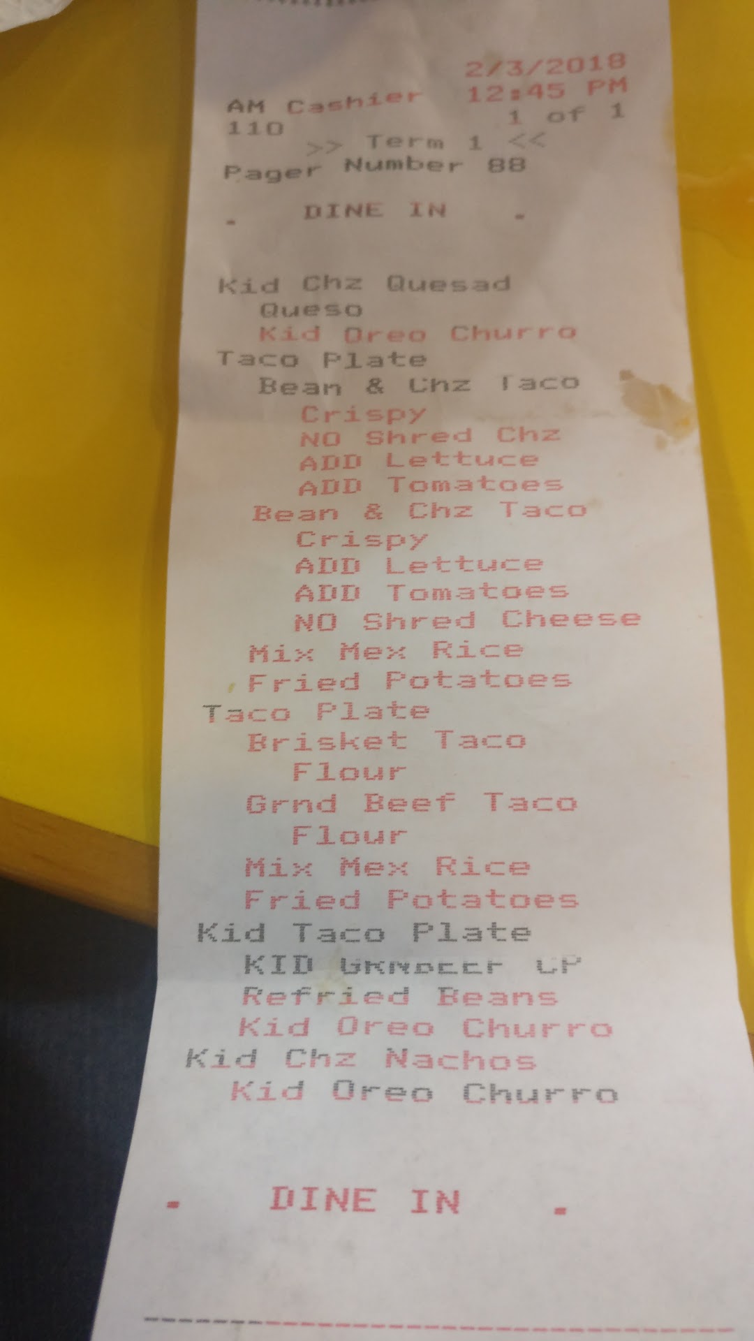 Read moreMy grown son and I just returned from Fuzzy's Taco Shop in Euless where we dined in. I ordered a cheese enchiliada plate with rice and beans, and he ordered brisket tacos. We topped it off with a side of guacamole and queso/chips, and a frozen margarita for me and margarita on the rocks for my son. We have been to Fuzzy's in Euless many times and also Fuzzy's in NRH several times. The margaritas were the worst we have ever had in that they had no color to them. It appeared and tasted as if there was no margarita mix in either of them; they tasted awful. We were not able to drink them. We returned to the cashier and complained that there did not appear to be any mix in them, and that all the other margs we received from Fuzzys were a pale green in color, the cashier told us that is because those others were made wrong (but those tasted like a marg!). My son's brisket tacos tasted off to him. He ordered 4 but ate only 2-1/2. He held one up sideways and moisture poured out of it, as if the lettuce or brisket were drenched in either water or grease. Worst meal ever after paying over $45.00. We did drink the margs that they gave us after our complaint. They were bad but we drank them anyway because we typically are not complainers. To top it all off, my son threw up all of his meal and marg after we got home. I was on standby in case I needed to take him to the ER. All I can say is we will never ever go back to the Fuzzy's in Euless. In the future we will patronize the Fuzzy's on Rufe Snow Drive in NRH, if we can ever get this bad taste out...