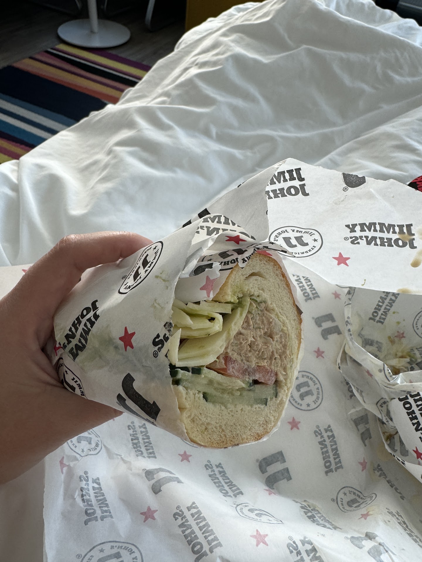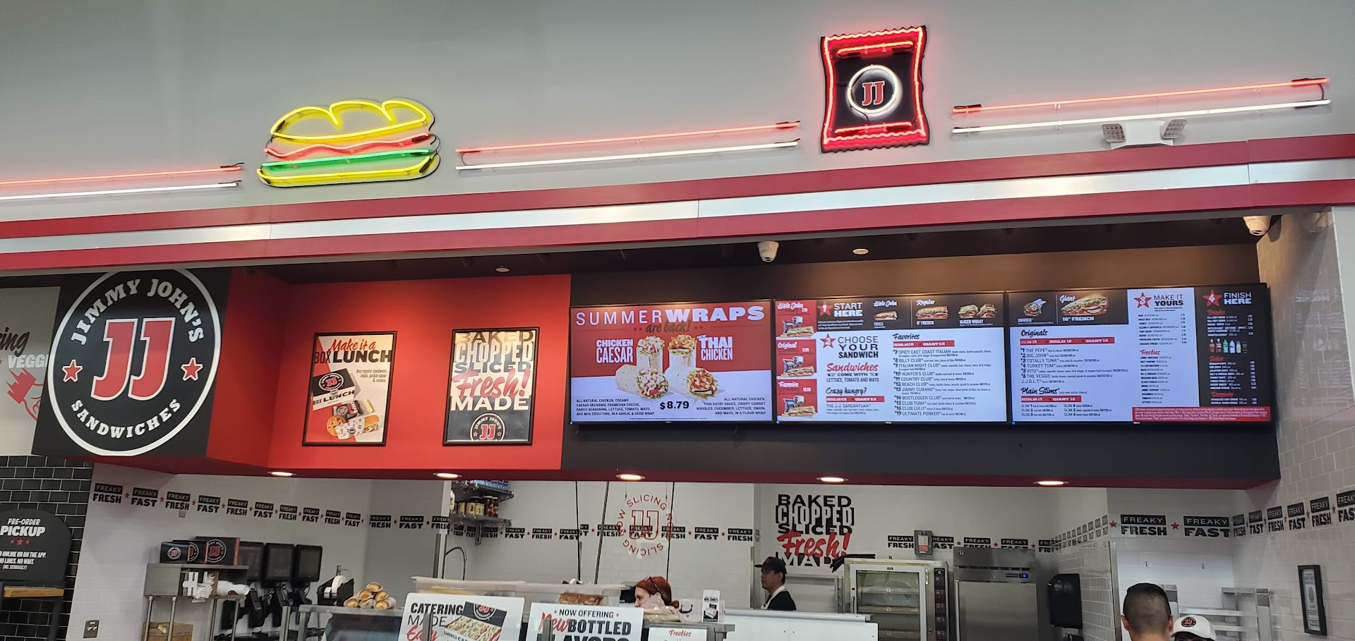 The sandwiches are decent as it's just another mediocre Jimmy John's. I wouldn't go out of your way to go to this shop unless it's close by. The food is generally kept fresh, with some days here and there (often enough to be noted) where the tomatoes are soggy, bread is hard , onions are foul, etc.