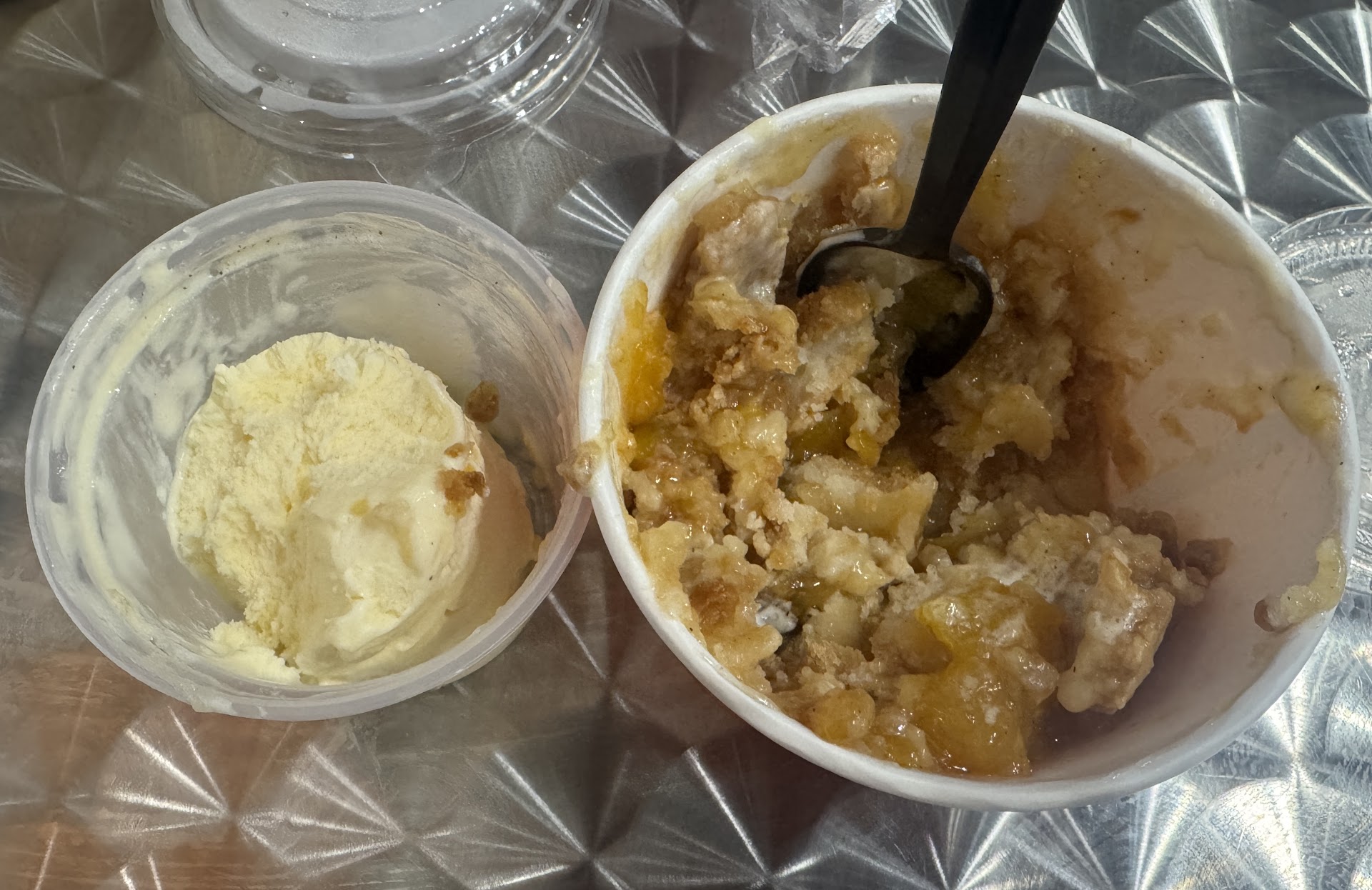We were very excited to try this but left disappointed. We tried the peach cobbler with ice cream. We ordered and then sat down in a seat.