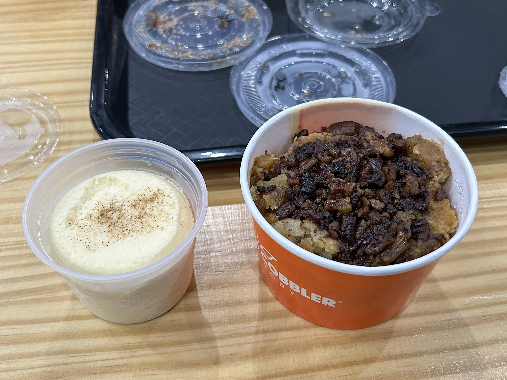 As far as flavor for the cobbler, it was ok! Not worth $8 for terrible presentation and wasted ice cream.