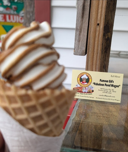 Read moreJust returned with my church group to see the Passion play! We stayed at the Passion Play Road Inn located beside Famous Ed's! The ice cream was phenomenal! I had the mocha cappuccino on a waffle cone! Others in my group had the cheesecake, butter pecan and butterscotch! All were super delicious! Best ice cream I have ever ate! Thanks to Ed for the great conversation and taking the time for a photo op! This is a must stop if you are ever on Eureka Springs! One satisfied...