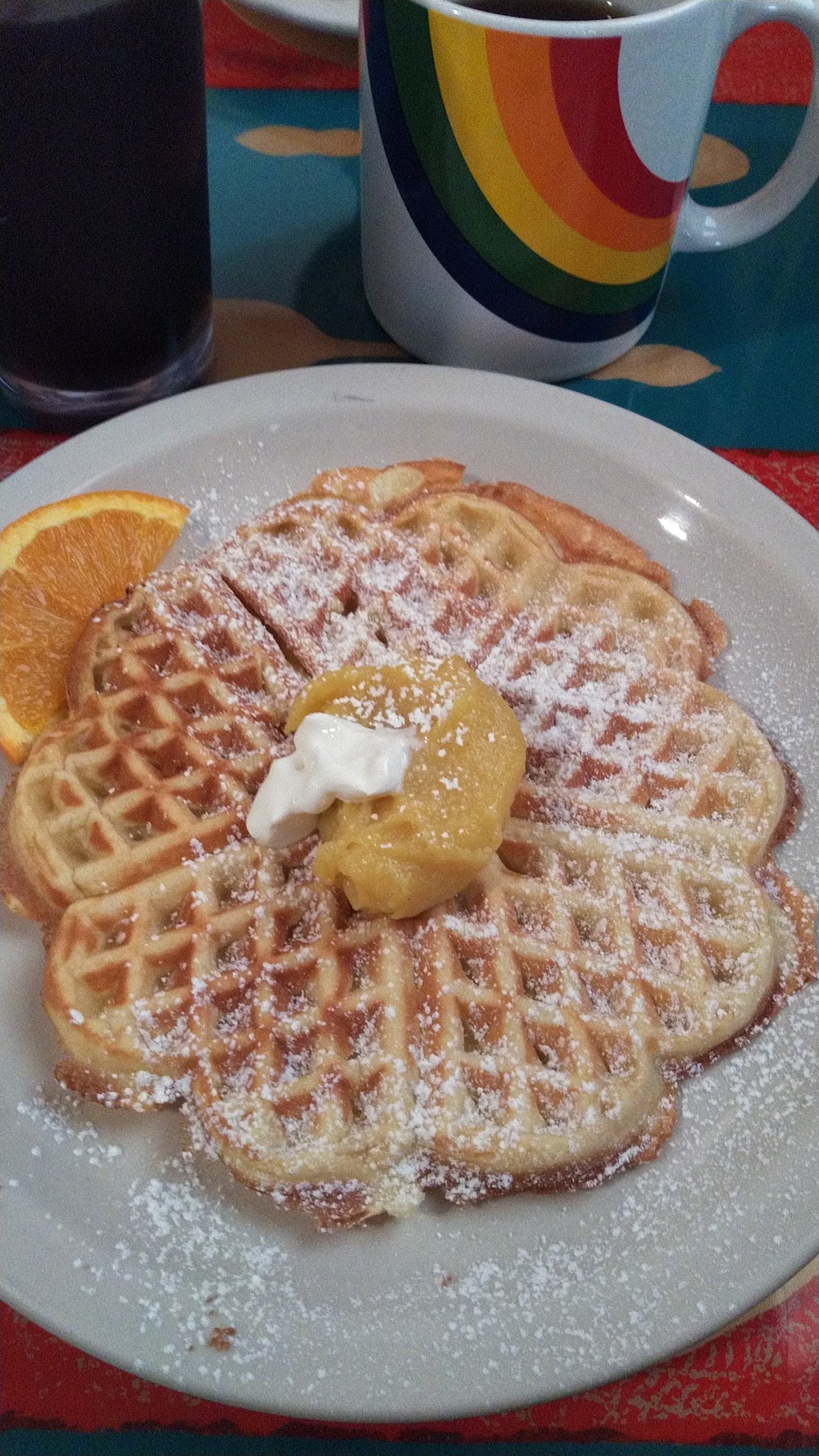 Read moreMy wife and I always love looking for new places to eat and we decided to stop here for breakfast on our way to Branson. I have been to Eureka Springs many times but had never seen this place before. We love waffles and after reading the great reviews we stopped in here on Saturday morning. We both ordered a waffle and also an order of biscuits and gravy. The place was very quaint and we loved the atmosphere. The people were friendly that took our order. It took longer than we expected to get a couple waffles when there was only a couple tables of people at the time. But it wasn't too long. We were excited to try these Norwegian waffles as we are looking to actually go to Norway in the near future. Unfortunately I think they sat on the counter for a while before they brought them out because they were practically cold when we got them. The flavor was pretty good but nothing amazing but being cold and rubbery in texture we did not really care for them. We asked for the bacon to be extra crispy and man did they make it extra crispy. Usually we say that and it's still not crispy enough but it was pretty much bacon bits crispy. The biscuits and gravy was the star of the show. They had great homemade biscuits with sausage gravy and that was definitely delicious. I feel like the price was pretty high for how small and thin the waffles are and just two strips of bacon. Should at least get three strips for the price. Overall a decent experience but not good enough to make me want to go back...