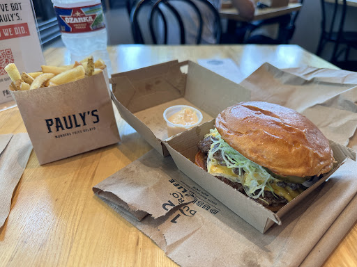Read morePauly’s Pauly’s Pauly’s…PAULY’s!!! Whaaaaaaat. The smash they put on that burger. Customer service bang. Grabbed my food to go. Ate some sweet potato fries in the car. Had to walk back in and grab another order of them cause man… (lip biting). And then the guy, (I guess he was the cook) asked me very boldly and confidently, “How you like that BURGER?”. I hadn’t tasted it yet. I grabbed my order from the lovely staff..(everyone was so helpful), and bounced. Man… I prayed. I tasted the burger. God bless!!🙄🫦 I almost felt violated tho. Thinking about how confidently the assumed cook who asked me how the burger was made me feel dirty. He knew that burger rocked my world. He had taken an uncomfortable amount of pleasure knowing that he was apart of what went down in that car. Whatever. I smashed the rest of the food. Almost went in and ordered another burger for the road (would’ve been worth it). Peep this tho… I was gonna taste the burger before going back in, but it was too hot. I felt almost as if I had skipped satisfying this guy’s confidence about the burger, but man…here I am writing a review in the parking lot. He may see me, but I don’t care. The food...